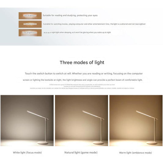 Modern LED Desk Lamp with Adjustable Brightness and Touch Control for Eye Comfort, Study, and Bedside Use - Black/White