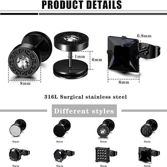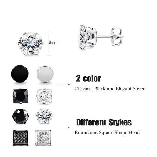 Sale price $8.49Shipping IncludedStylish Stainless Steel Black Stud Earring Set for Men and Women with Silver Cubic Zirconia