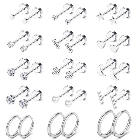 Sale price $9.99Shipping IncludedStylish Stainless Steel Stud Earring Set with Sparkling Gemstones – 16 Pairs in Multiple Sizes