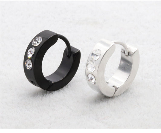 Sale price From $15.49Shipping IncludedChic Unisex Stainless Steel Hoop Earrings with Three Sparkling Stones for Everyday Elegance