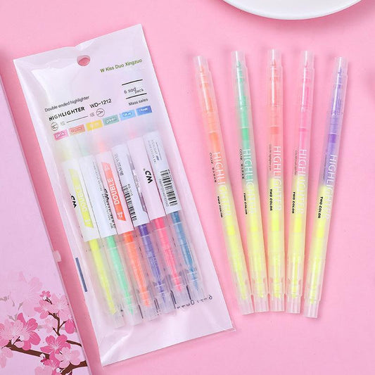 Dual-Tip Colorful Highlighter Pens, Set of 6 – Versatile & Bright Markers for Students and Professionals