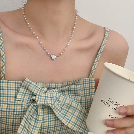 Sale price $4.49Shipping IncludedElegant Butterfly Choker Necklace for Women - Summer Crystal Pearl Design - Unique Minimalist Style