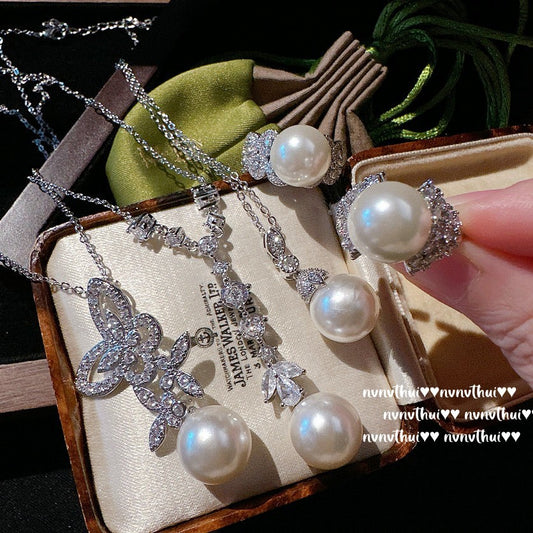 Sale price From $7.49Shipping IncludedElegant Butterfly Gemstone Pearl Necklace - Glacial Australian White with Deep Sea Beads and Zircon Drops