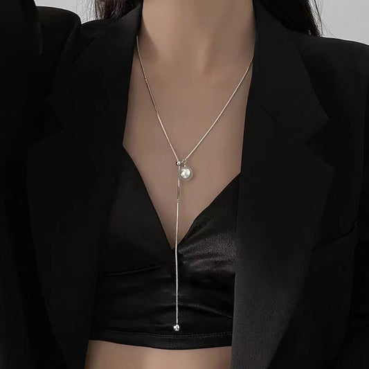 Sale price $4.99Shipping IncludedElegant Pull-Down Pearl Long Necklace - Chic Minimalist Jewelry for Every Occasion