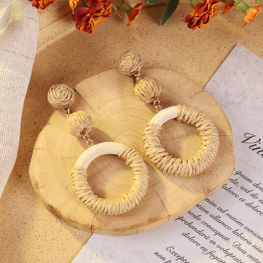 Sale price From $4.49Shipping IncludedBohemian Vintage Woven Rattan Earrings for Women - Summer Beach Chic Long Earrings