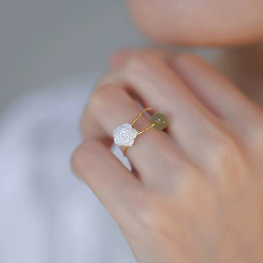 Sale price $4.49Shipping IncludedStunning Rose Flower Design Adjustable Ring for Women – Unique Mother of Pearl Vintage Style