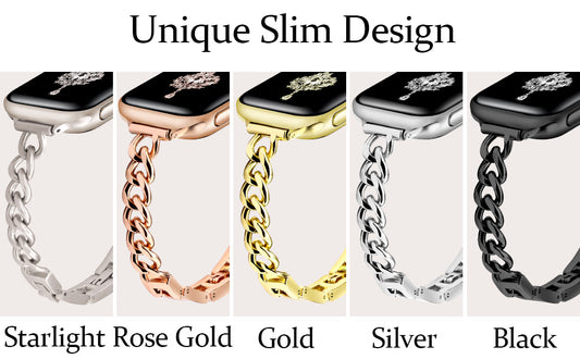 Sale price From $6.99Shipping IncludedStylish Stainless Steel Apple Watch Band - Adjustable Women’s Bracelet Strap in Silver, Rose Gold, and Gold