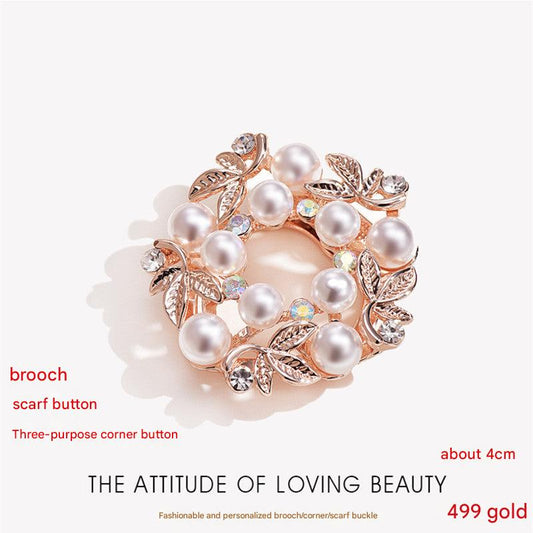 Sale price $4.49Shipping IncludedElegant Pearl Brooch with Rhinestones - Versatile Floral Scarf Clip for Women and Men