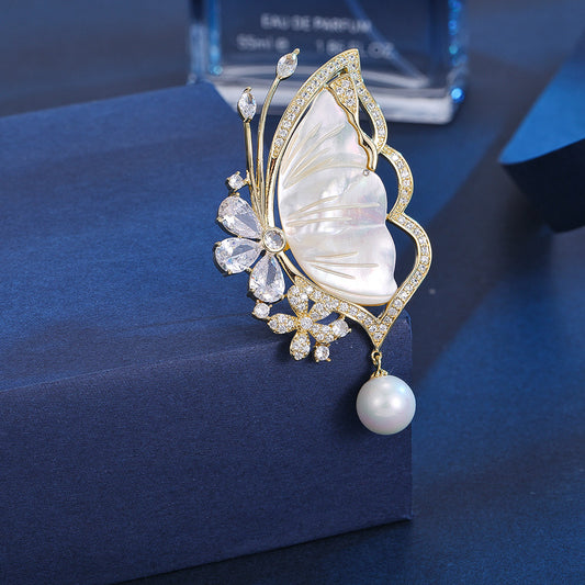 Sale price $9.99Shipping IncludedElegant Natural Shell Butterfly Brooch - High-End Fashion Accessory for Women