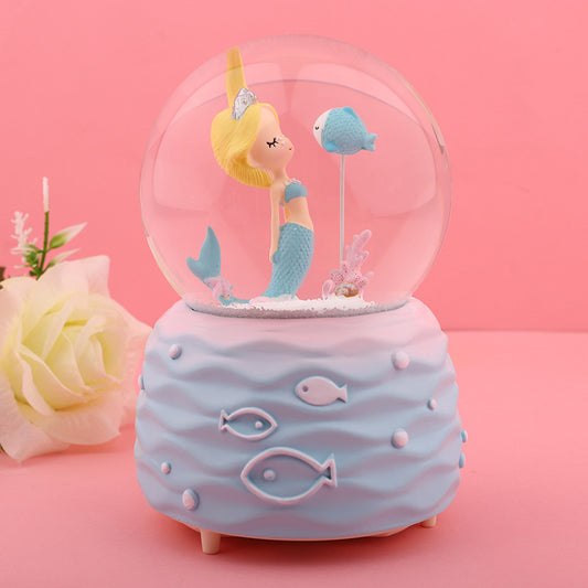 Enchanting Mermaid Crystal Snow Globe Music Box with Colorful LED Lights – Perfect Gift for Birthdays, Valentine’s Day, and More