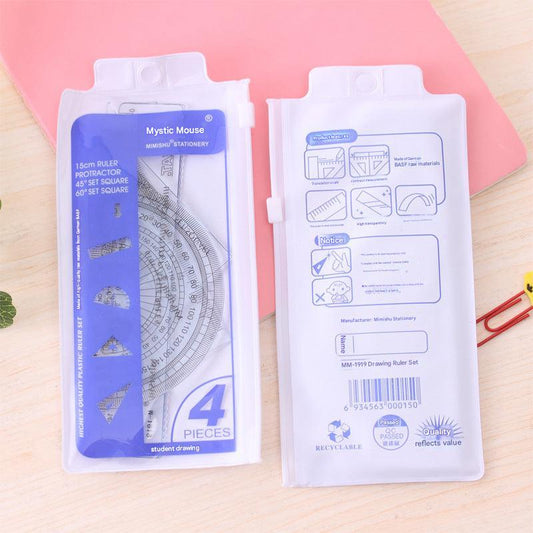 Compact Student Geometry Set – Clear 15cm Rulers, Triangles, Drawing Tools for School, 4-Piece Kit