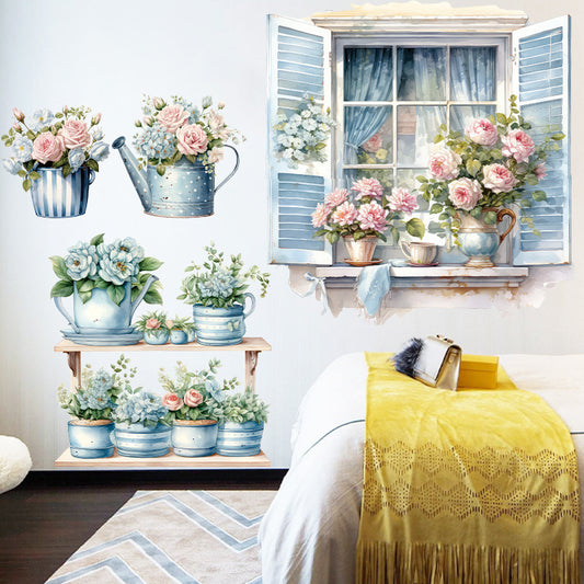 Sale price $6.49Shipping IncludedBlue Floral Wall Decal for Bedroom - Create a Cozy Window Effect Background Easily