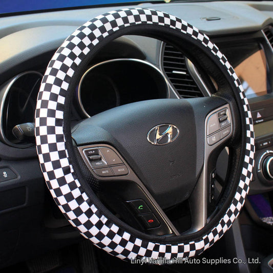 Sale price $10.99Shipping IncludedUniversal Stretch-Fit Steering Wheel Cover in Black and White Checkered Design, Elastic Grid Pattern, Fits 38cm Diameter