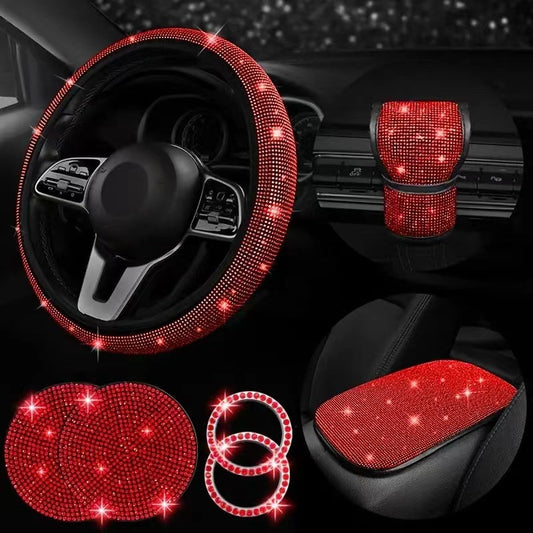 Sale price $22.49Shipping IncludedLuxury Car Steering Wheel Cover Set with Bling Rhinestones, Universal Fit, 7-Piece Set Including Cup Pad and Armrest Cushion