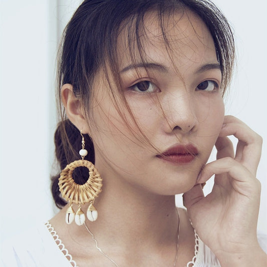 Sale price From $5.49Shipping IncludedHandcrafted Boho Chic Rattan Drop Earrings for Women - Perfect for Beach Vacations and Bohemian Styles
