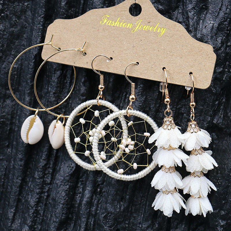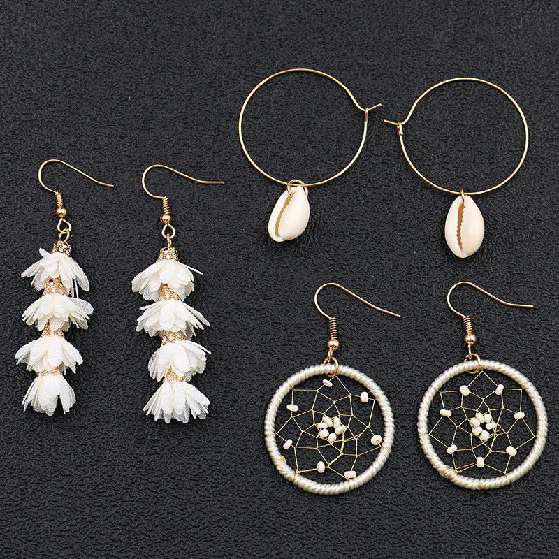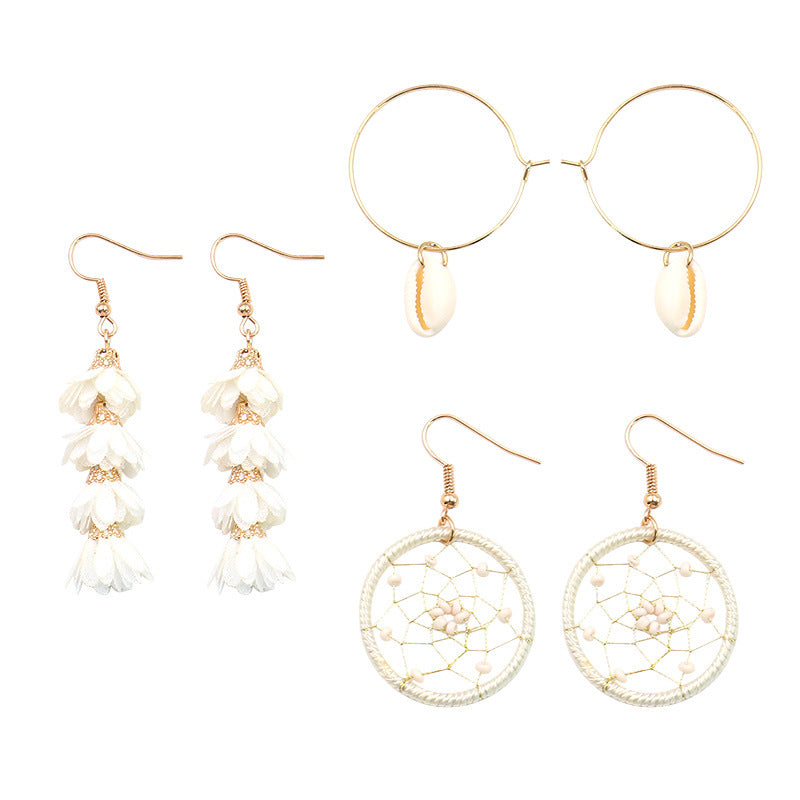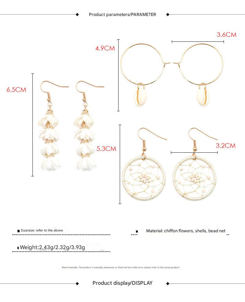 3件套耳环套装韩版创意个性金色贝壳捕梦网花朵耳坠配饰跨境热卖