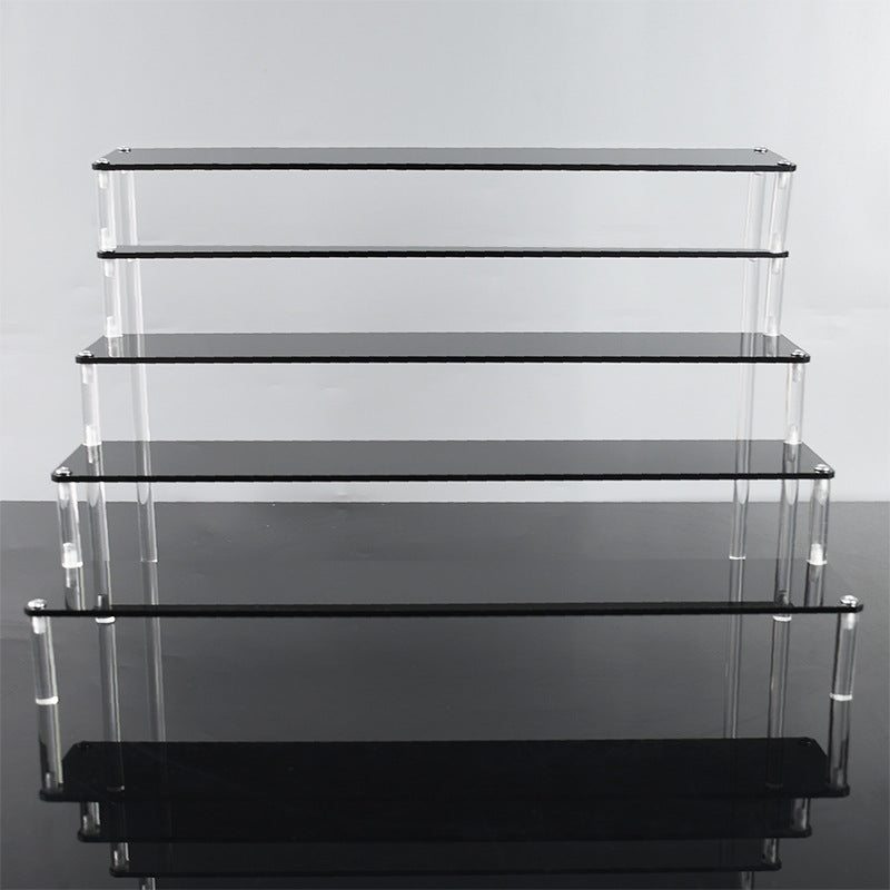 Enhance your retail or home display with our Multi-Tiered Acrylic Display Stand. Available in various configurations, from single to five layers, and two different lengths, this display stand meets diverse display needs whether for commercial shop showcases or personal collection showcases. The clear acrylic material not only adds a sleek, contemporary appearance but also allows complete visibility of items from all angles. With an easy-to-assemble design and protective film covering, each unit remains pristine and clear. The lightweight, yet sturdy structure allows for easy reconfiguration and relocation as your display needs evolve. Whether you're showcasing delicate jewelry, beloved figurines, exclusive cosmetics, or specialty merchandise, this acrylic display stand elevates the presentation to engage customers and enhance home decor.