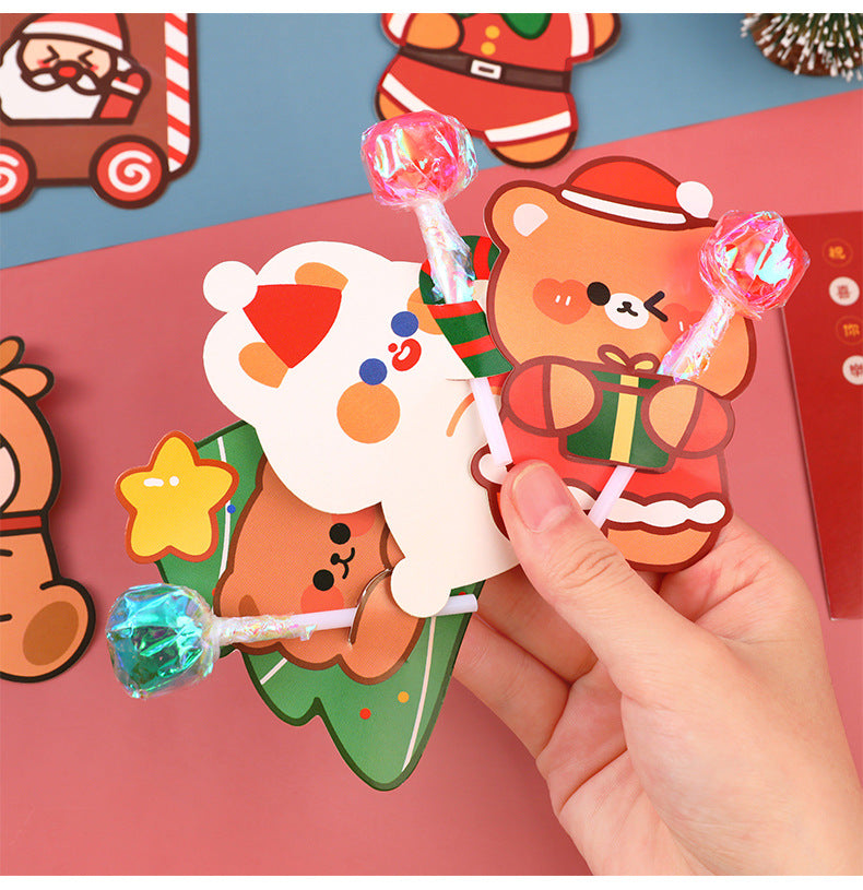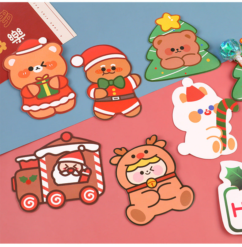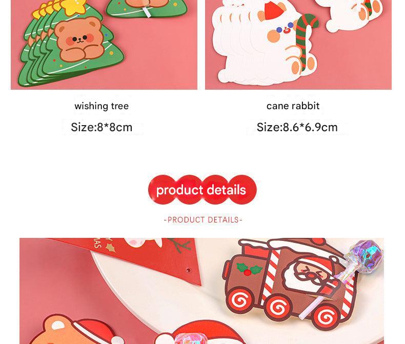 Elevate your holiday decor and gift-giving this Christmas with our Cartoon Christmas Candy Cards! Crafted from premium cardstock for durability and a professional look, these cards feature eye-catching, hand-drawn style illustrations of popular holiday figures such as the Gingerbread Man, Candy Cane Rabbit, Jingle Deer, Wish Tree, Christmas Bear, and Santa Claus. Perfect for children and adults alike, each card includes a novel slot to insert a candy cane, transforming a simple note into a charming and interactive holiday treat. Use these cards to decorate your Christmas tree, personalize your gifts, or send a heartfelt message to loved ones. Our festive collection packs a variety of designs, ensuring you have the perfect card for every occasion this holiday season.