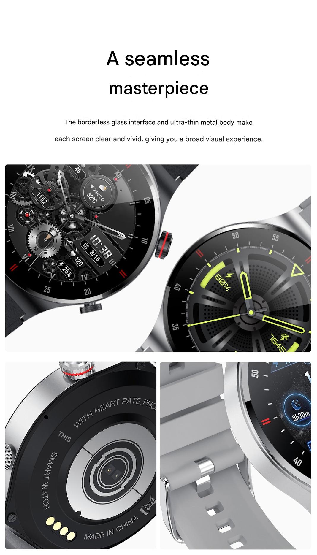 • Water-Resistant Design: Perfect for everyday wear, this smartwatch withstands splashes and sweat.