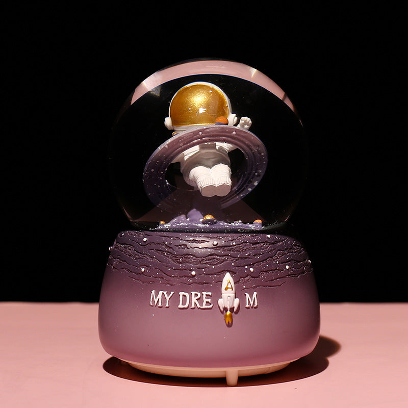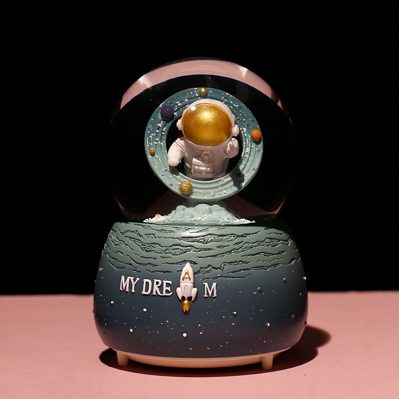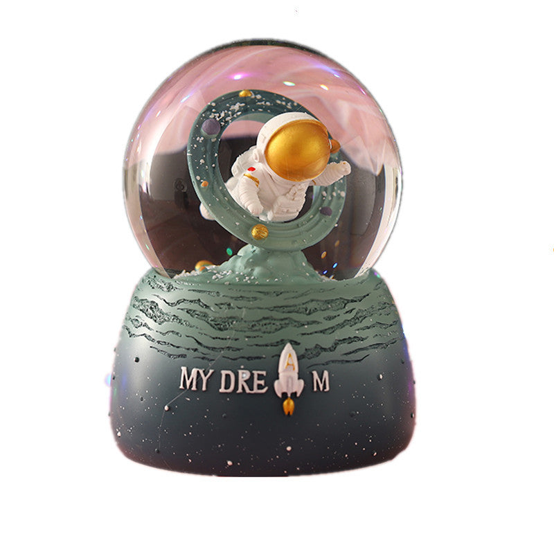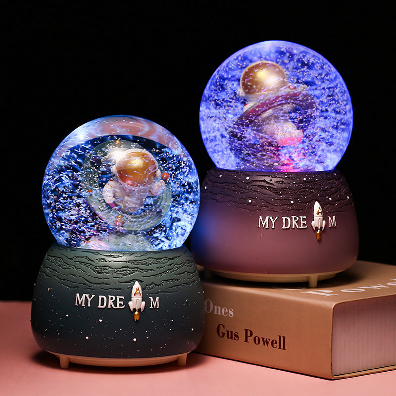 Step into the galaxy with our Astronaut Snow Globe Music Box, a captivating combination of art and music. This space-themed globe features an astronaut floating amidst glittering snow, activated by both manual and automated snow drift options. With its built-in colorful LED lights, it emits a soft, enchanting light, making it a perfect nightlight or decorative piece. It's exquisitely hand-painted, displaying attention to detail that appeals to art enthusiasts and collectors alike. Capable of playing multiple melodies, it adds a peaceful audio retreat to its visual splendor. Whether you're celebrating a birthday, rewarding a milestone, or simply sprucing up your decor, this music box is a versatile gift that transcends the ordinary, making every day a little more magical.
