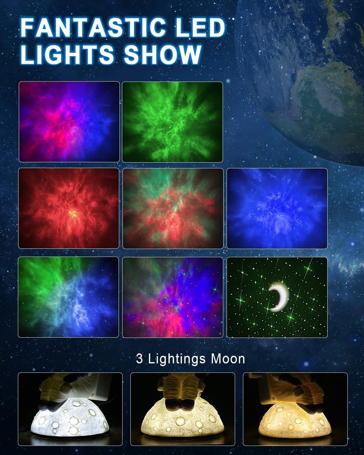• Transform your Room: Instantly create a captivating starry sky with a vibrant multicolor LED display.