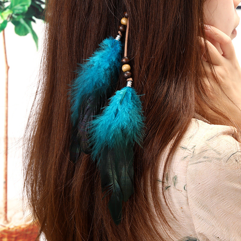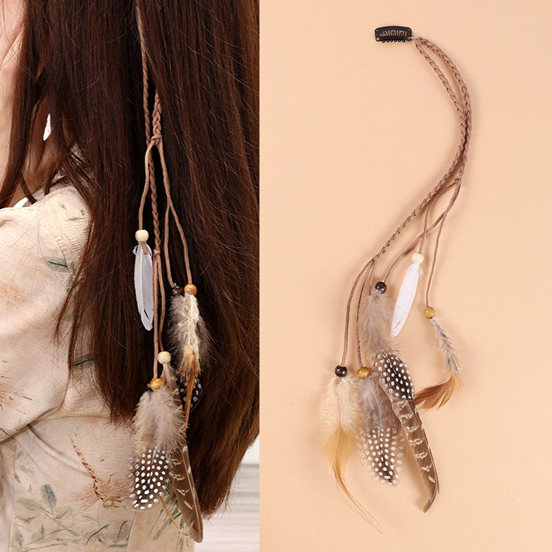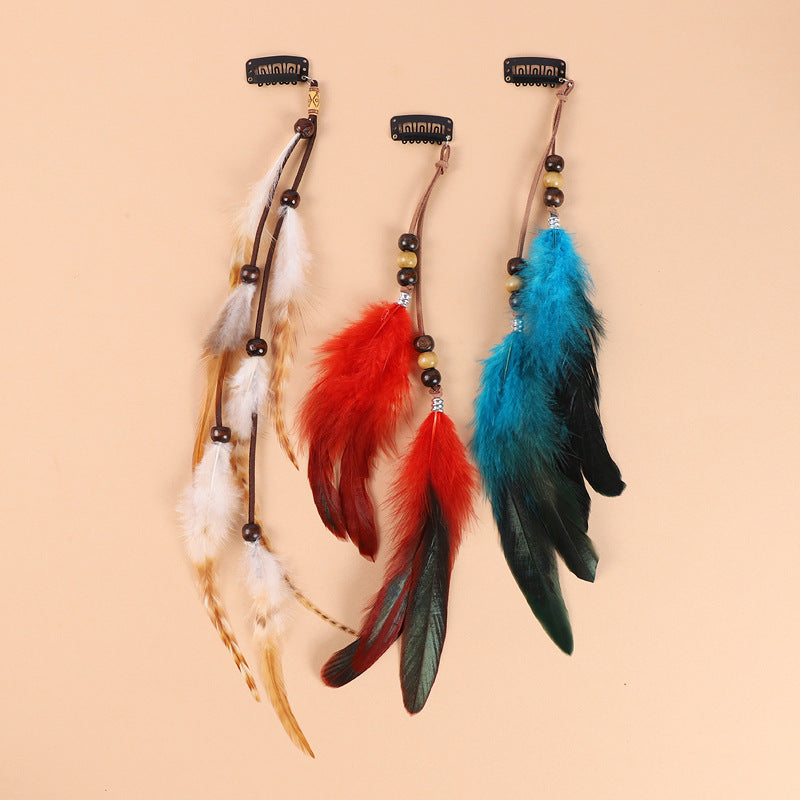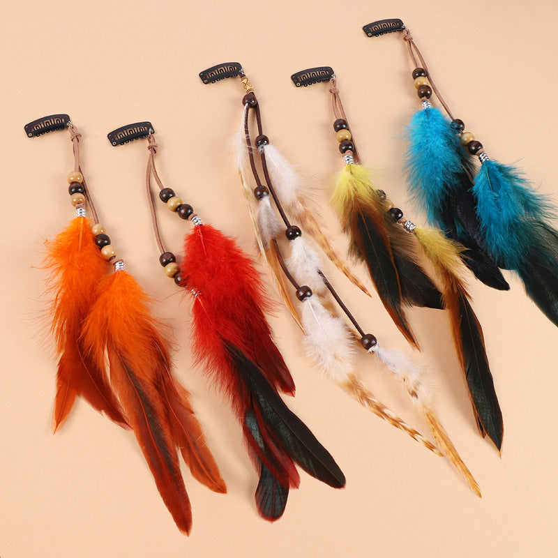 Bohemian Feather Hair Clip with Tassels - Vintage Inspired Beach Accessory for Women