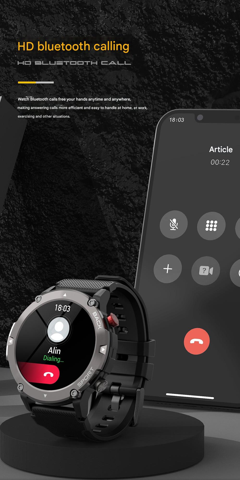 • Stay Connected: Make and receive Bluetooth calls directly from your wrist.