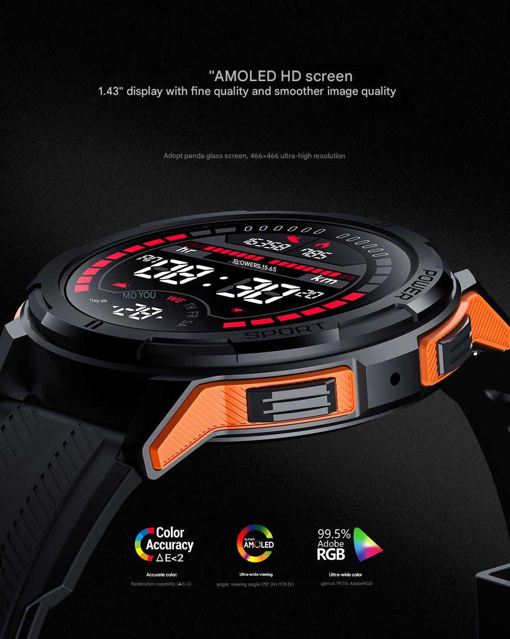 • Experience crystal-clear visuals with the vibrant 1.43-inch AMOLED display.