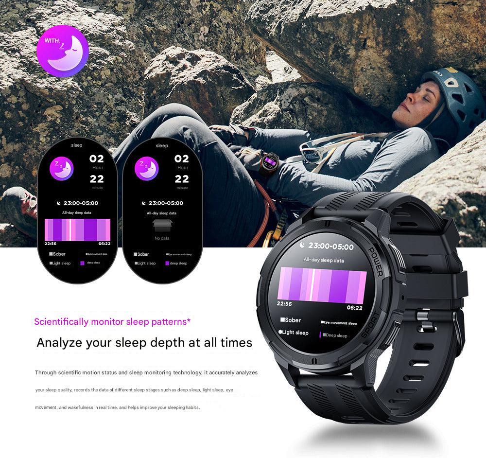 • Monitor your sleep pattern and health metrics effortlessly with smart features.