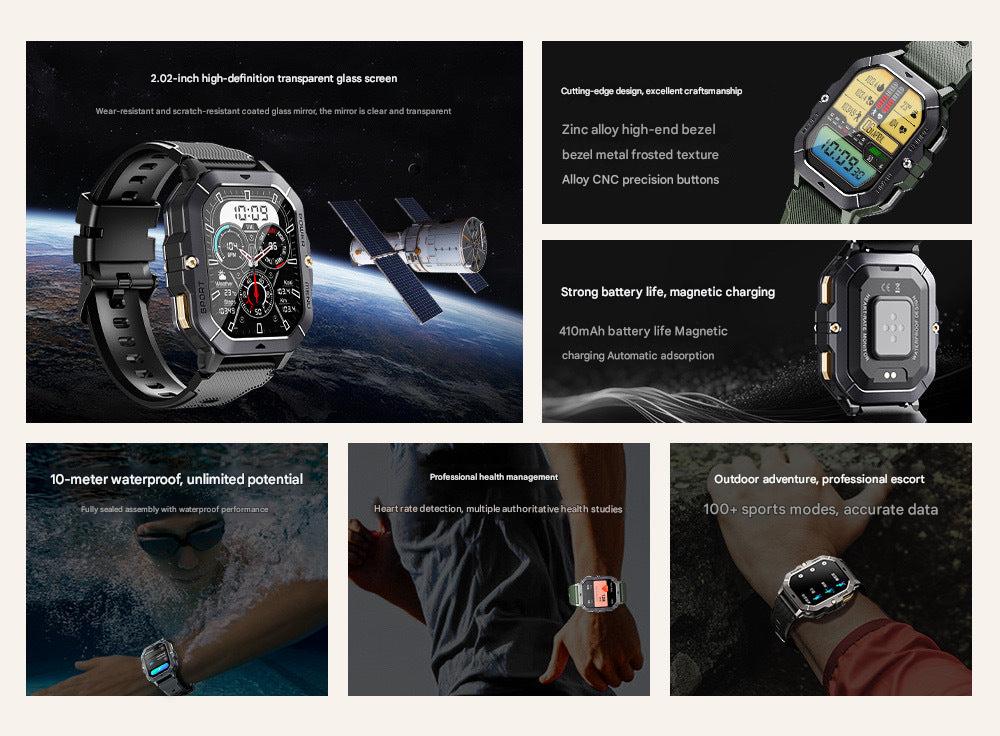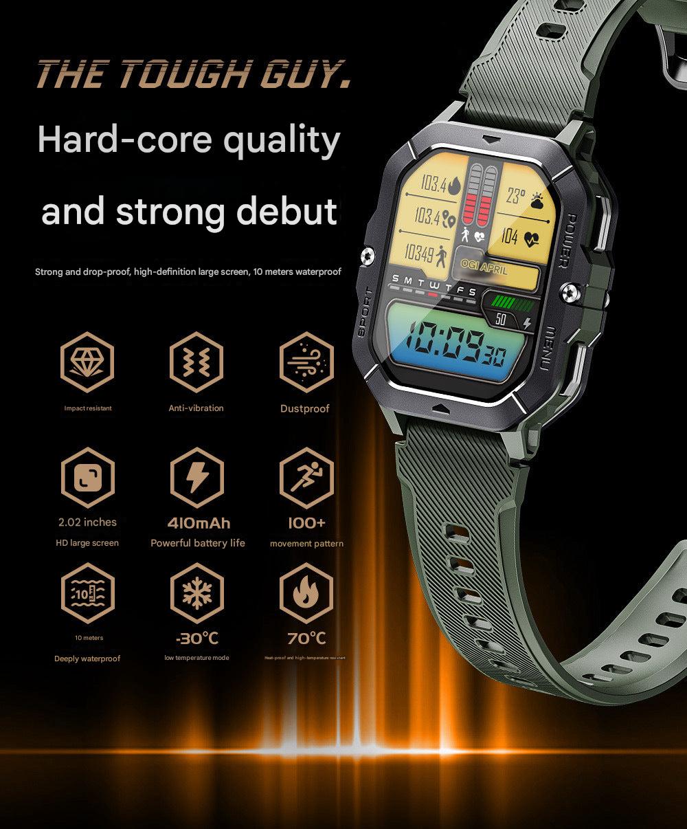 The C28 Smart Watch is your ideal partner for a balanced lifestyle. With a stunning 2.02 inch HD screen, you're always connected thanks to Bluetooth calling that lets you answer calls without reaching for your phone. This smartwatch also takes health monitoring to the next level with features like heart rate and blood oxygen tracking, ensuring you stay informed about your well-being. Its durable, waterproof design makes it ideal for outdoor enthusiasts and fitness buffs alike. Plus, with a battery life of 7-14 days, it’s built to keep up with your active lifestyle. Whether you're at the gym, hiking, or on the go, the C28 is the perfect smartwatch to enhance your daily routine.