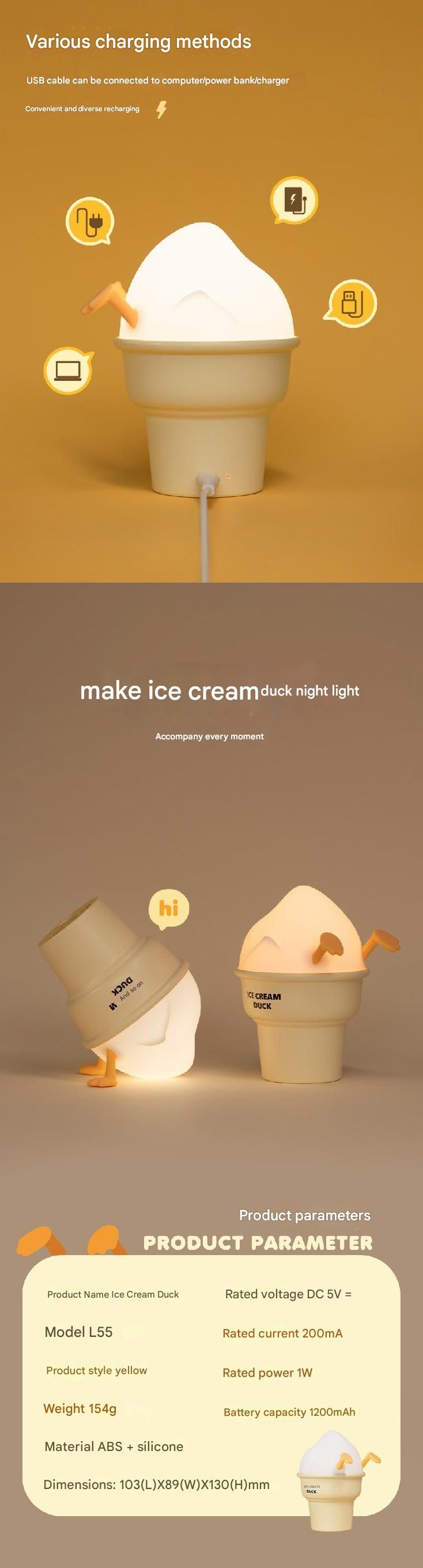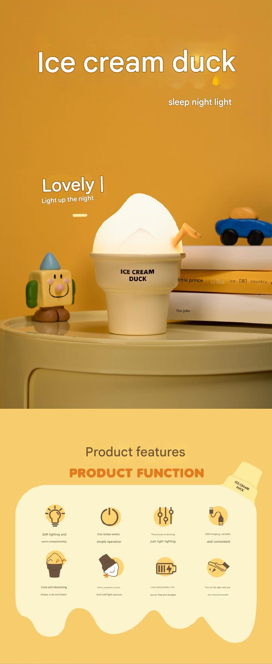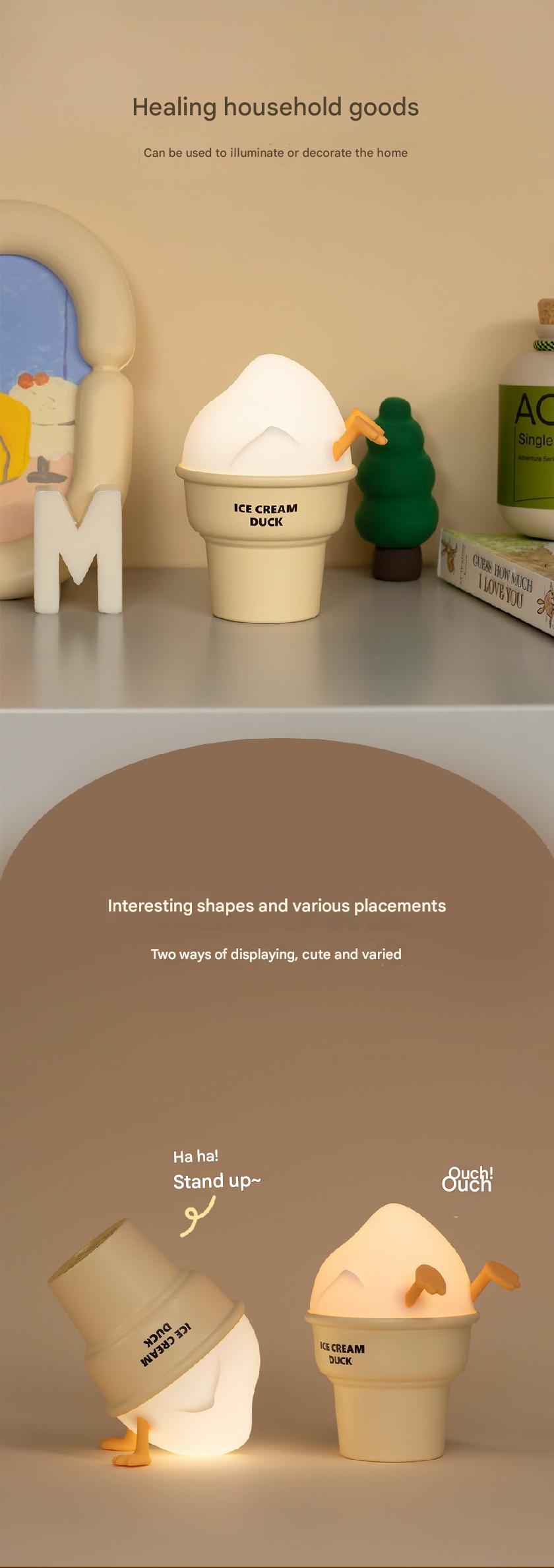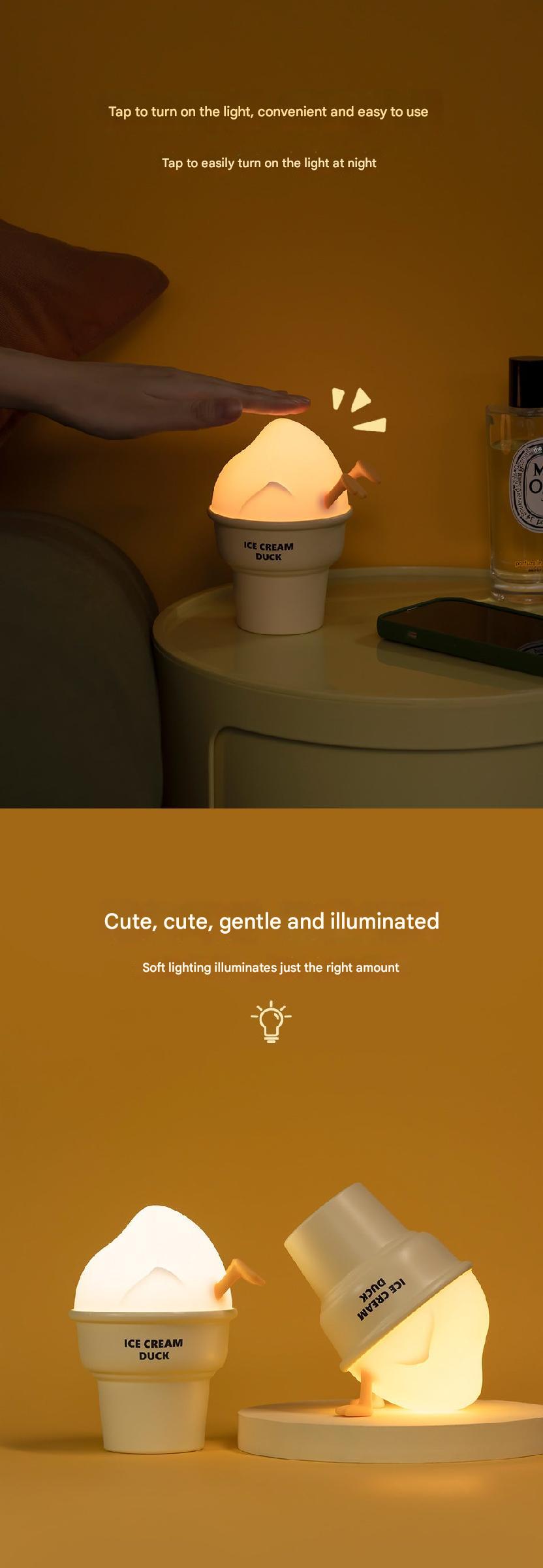 Illuminate your space with a touch of charm using our Cartoon Soft Glow Bedside Lamp. Designed to resemble a delightful ice cream cone, this lamp offers touch-activated light modes that adjust from a warm, soothing glow to bright white light with just a simple tap. Ideal for both children and adults, it creates a comforting atmosphere in any room. The lamp is made with durable ABS material, ensuring it's safe and long-lasting. It's rechargeable and portable, making it easy to move and ideal for travel. Its 1W LED light is not only bright but also energy-efficient, ensuring that it's cost-effective. This cute and versatile lamp is an excellent choice for a night light, a decorative piece in a child's playroom, or as a unique gift for any occasion.