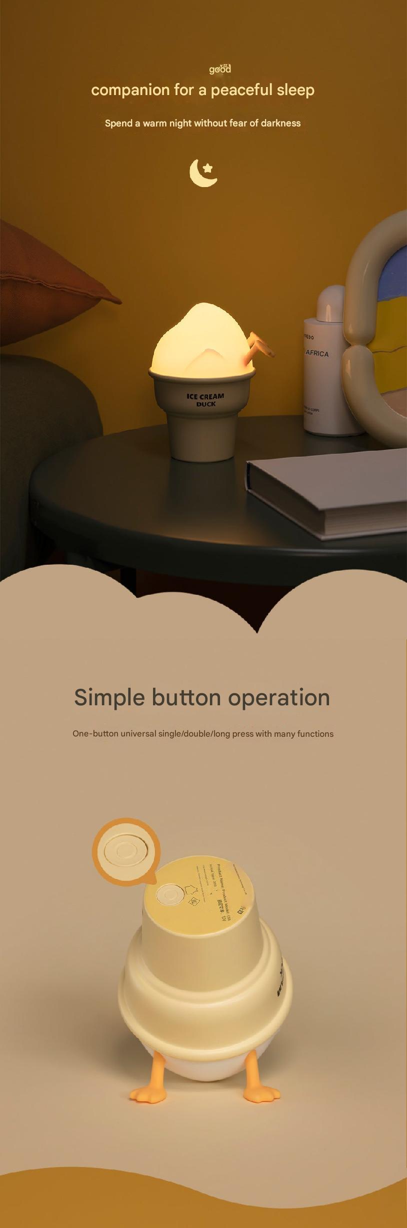 Cartoon Soft Glow Bedside Lamp with Touch-Sensor, Rechargeable Cute Ice Cream Style Night Light