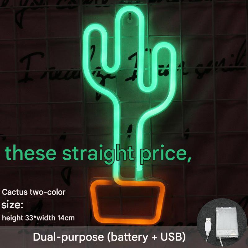 Chic LED Neon Lights for Home Decor - USB/Battery Operated Flamingo, Cactus & More - Perfect for Room Decoration & Events