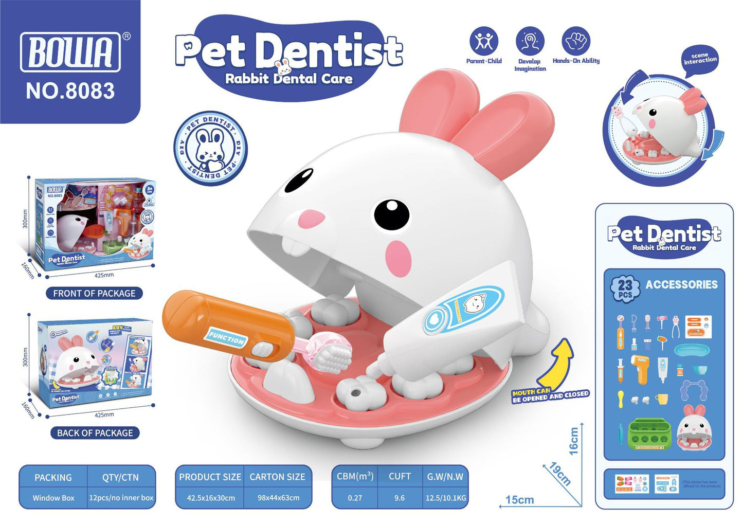 • Realistic Pet Care: Includes plush dogs and rabbits to simulate real dental and medical care interactions, enhancing the playtime experience.