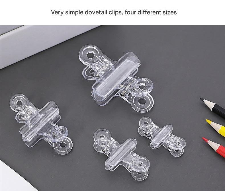 Elevate your organizational tools with our Clear Tail Clip Set. Each clip is crafted from durable, transparent plastic that doesn't obscure important information and adds a touch of elegance to your documents. The variety of sizes ranging from 22mm to 50mm makes these clips incredibly versatile, perfect for everything from securing important office documents to keeping snack bags closed in the kitchen. Their lightweight design makes them easy to handle, while their strong grip ensures your items are securely fastened without damage.