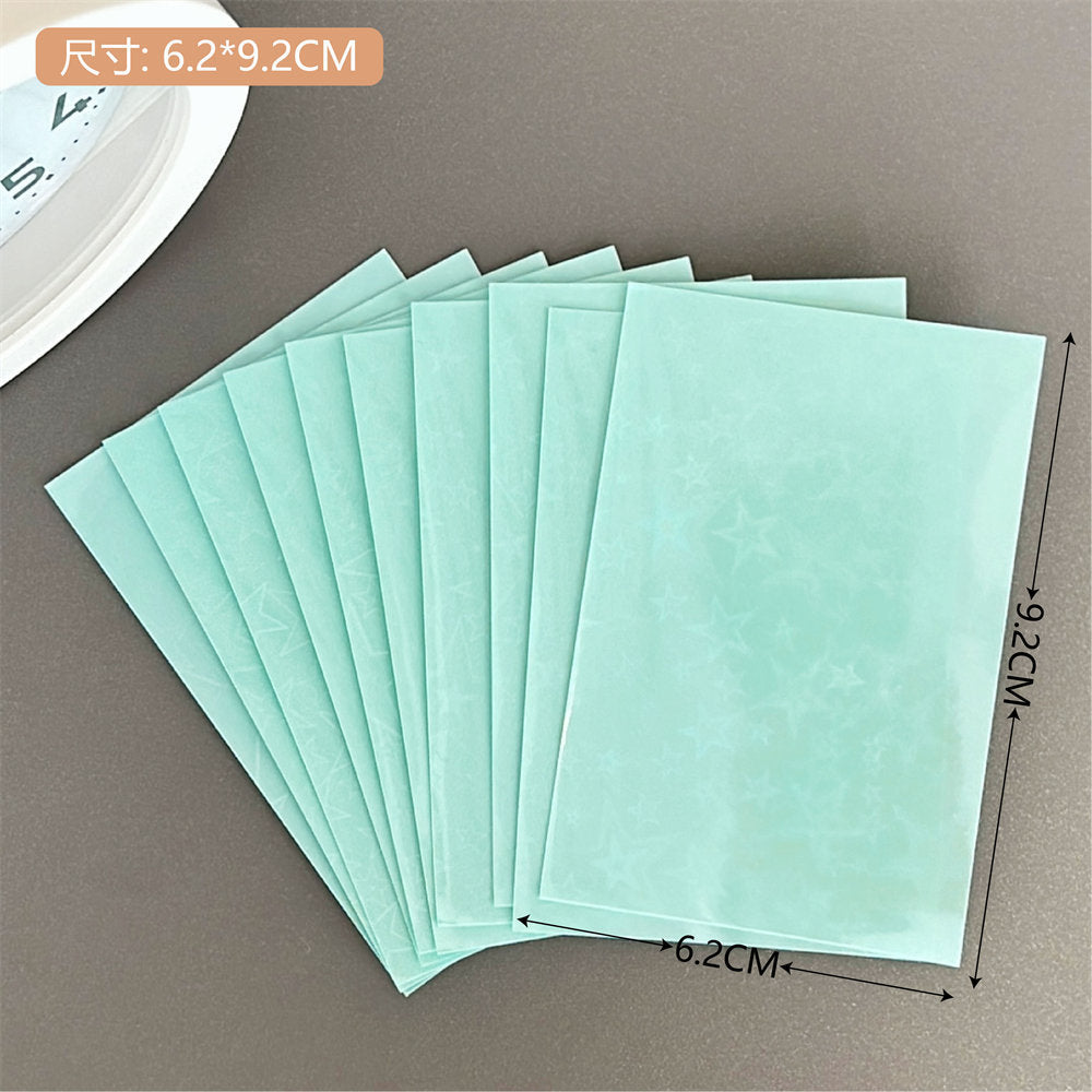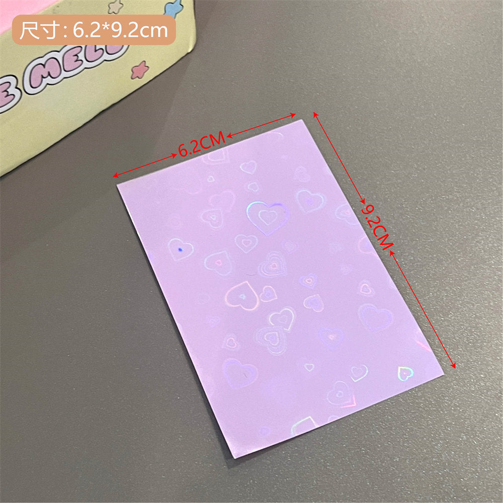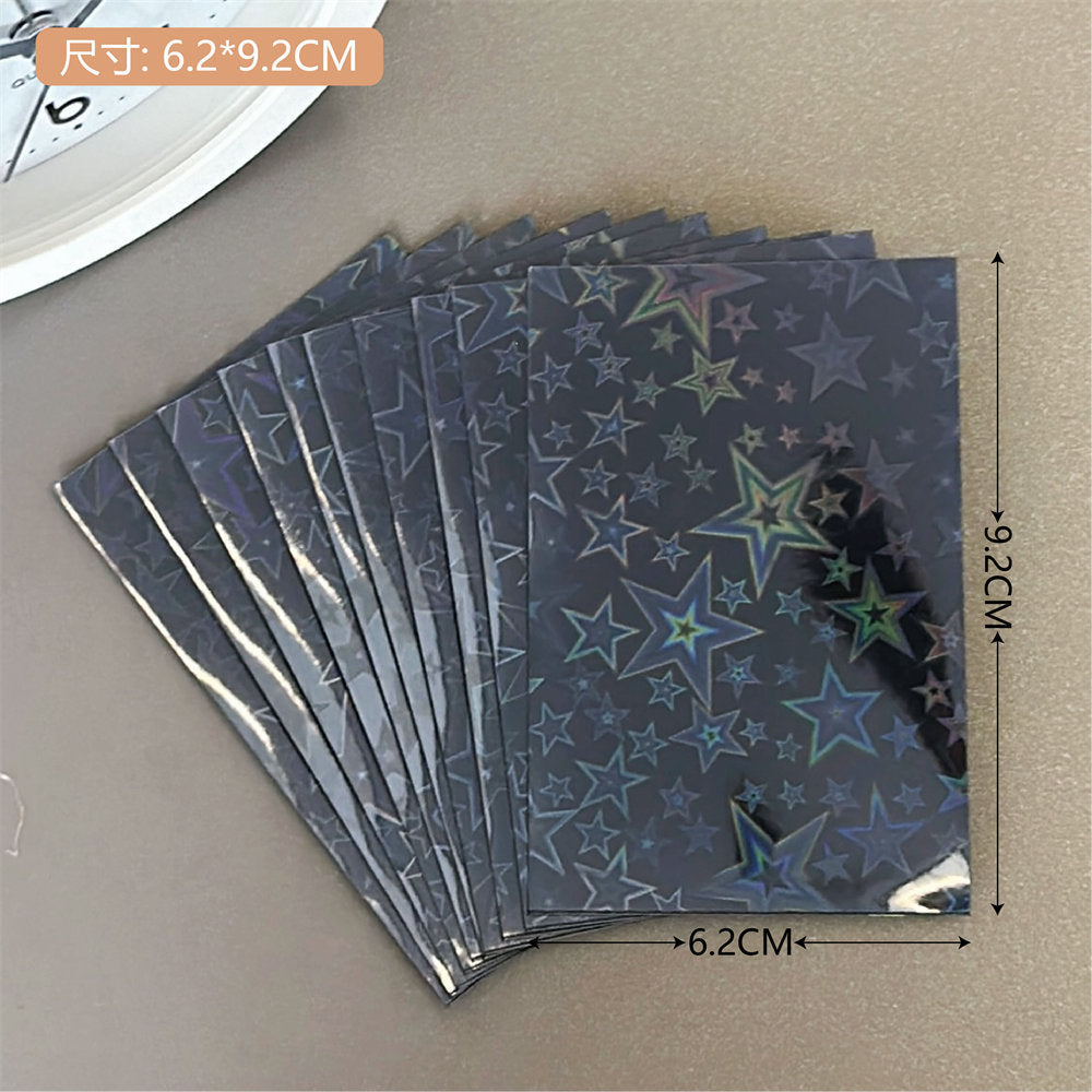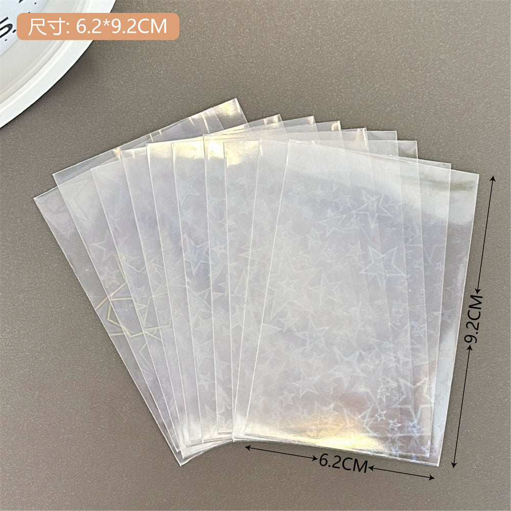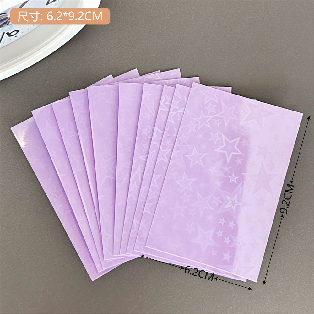 Organize and protect your valuable card collection with our high-quality, durable photo card sleeves. These sleeves come in a vibrant selection of colors and patterns, including unique laser designs such as stars and hearts, adding a touch of personality to your photo organization. The sleeves are crafted from a sturdy plastic material that offers excellent protection against environmental damages such as water, dust, and handling wear. Whether you are a professional photographer, a collector, or simply looking to keep your memories safe, these transparent card sleeves are perfect for displaying, organizing, and safeguarding your cards. Each pack includes 10 sleeves, providing ample coverage for your collection needs.