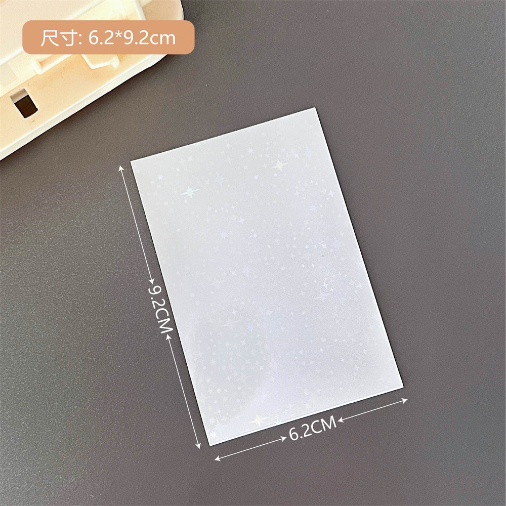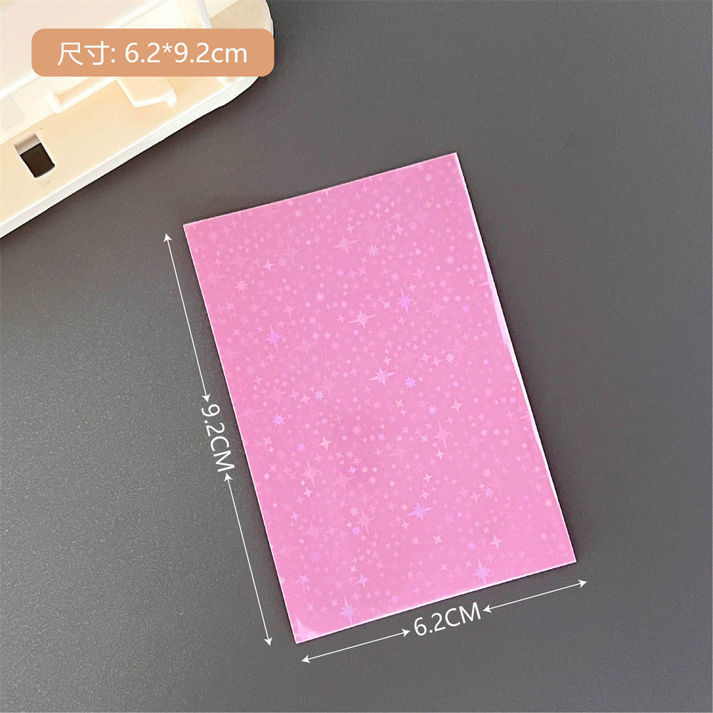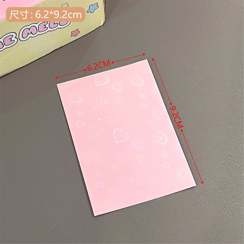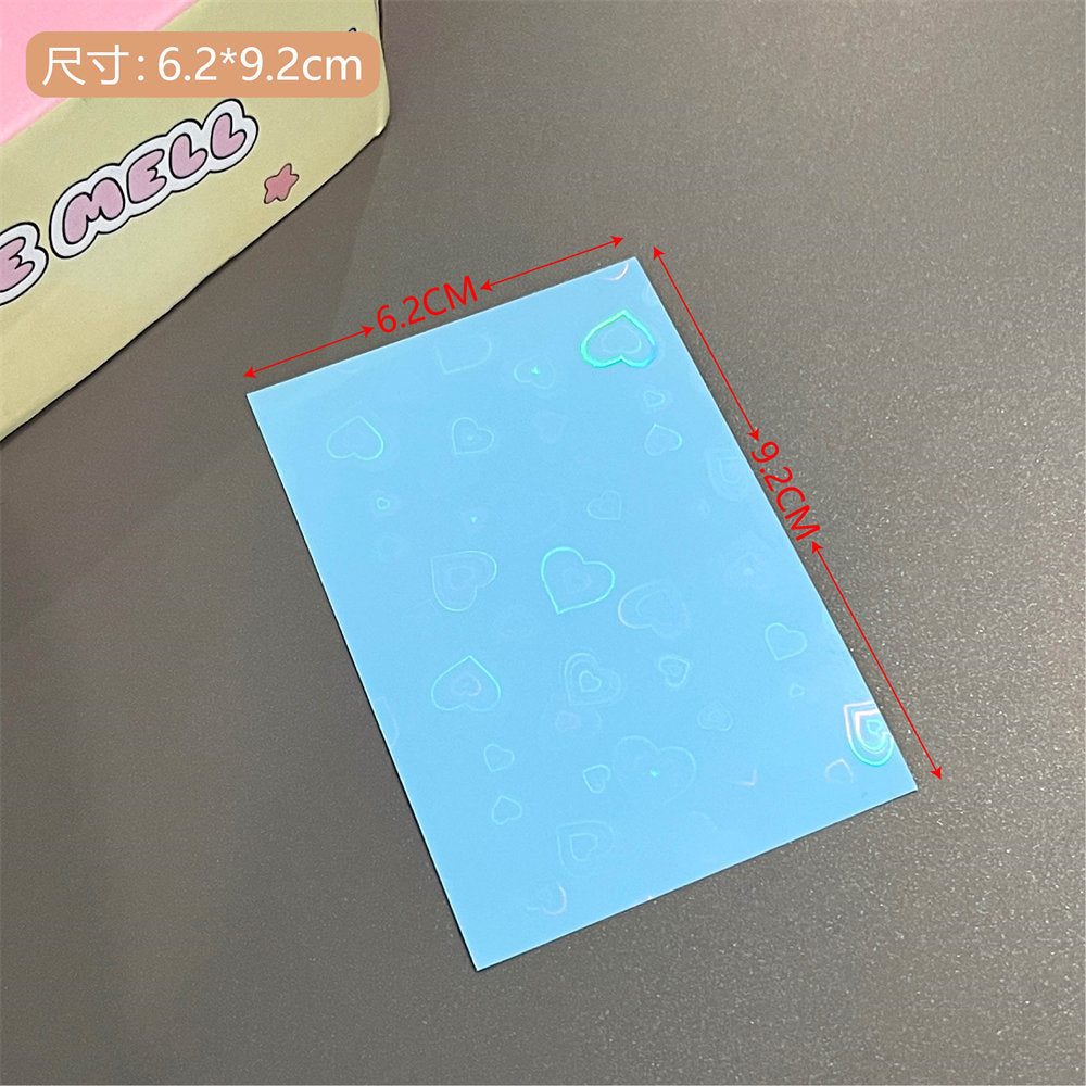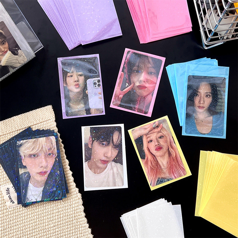 Organize and protect your valuable card collection with our high-quality, durable photo card sleeves. These sleeves come in a vibrant selection of colors and patterns, including unique laser designs such as stars and hearts, adding a touch of personality to your photo organization. The sleeves are crafted from a sturdy plastic material that offers excellent protection against environmental damages such as water, dust, and handling wear. Whether you are a professional photographer, a collector, or simply looking to keep your memories safe, these transparent card sleeves are perfect for displaying, organizing, and safeguarding your cards. Each pack includes 10 sleeves, providing ample coverage for your collection needs.