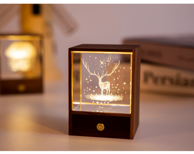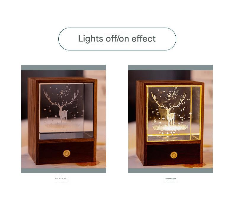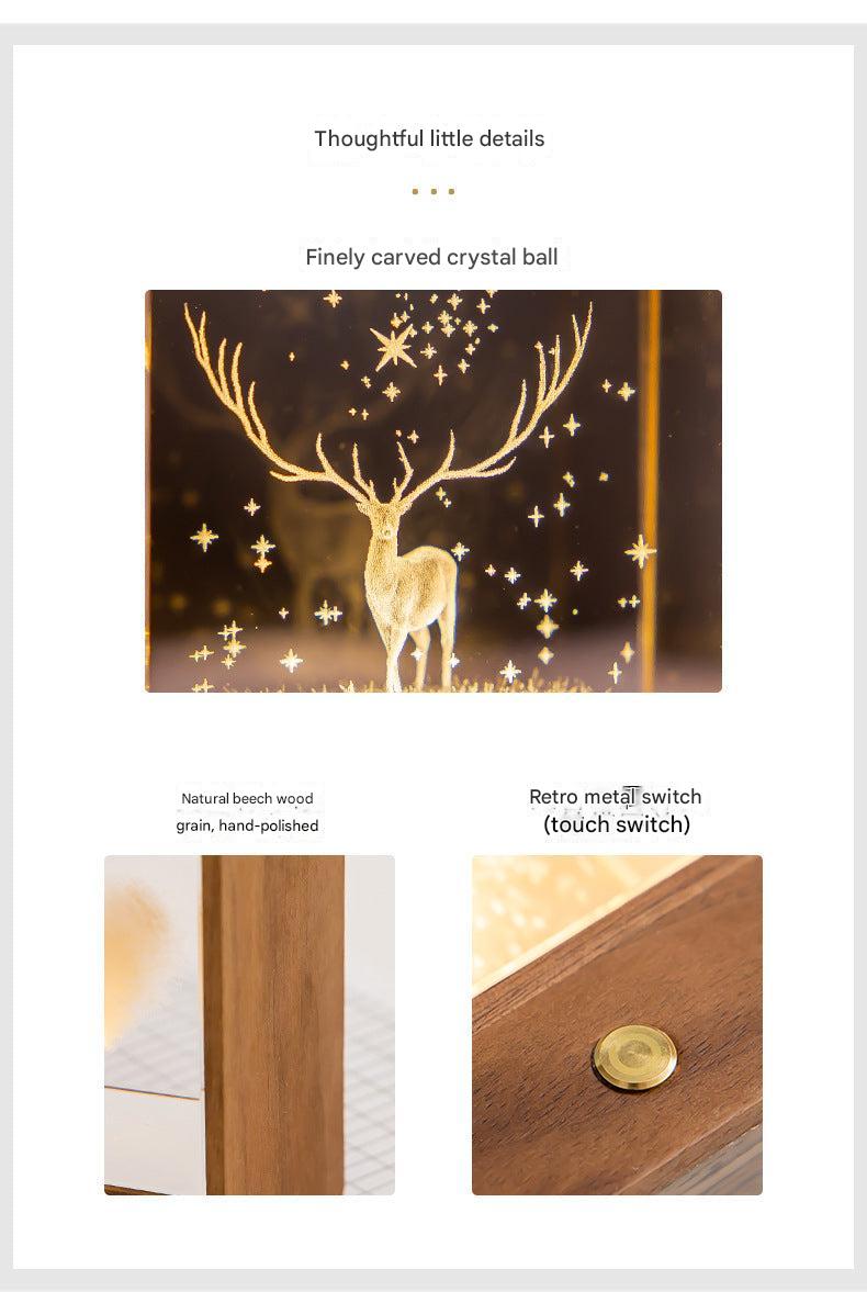 Creative Astronaut & Reindeer LED Night Light - Wooden Illuminated Crystal Globe, Perfect Gift for Birthdays & Holidays