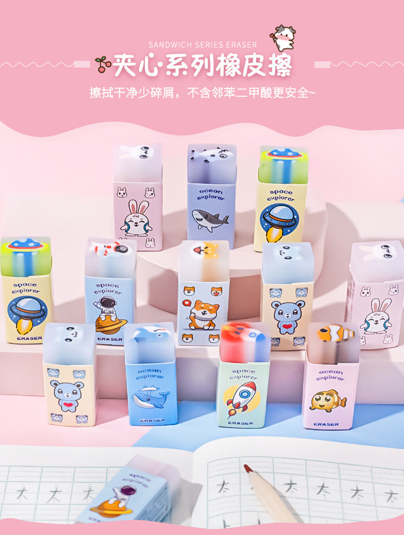 Creative Astronaut-Themed Low-Dust Erasers for Kids, Cute Layered Design, Perfect for Sketching and Corrections