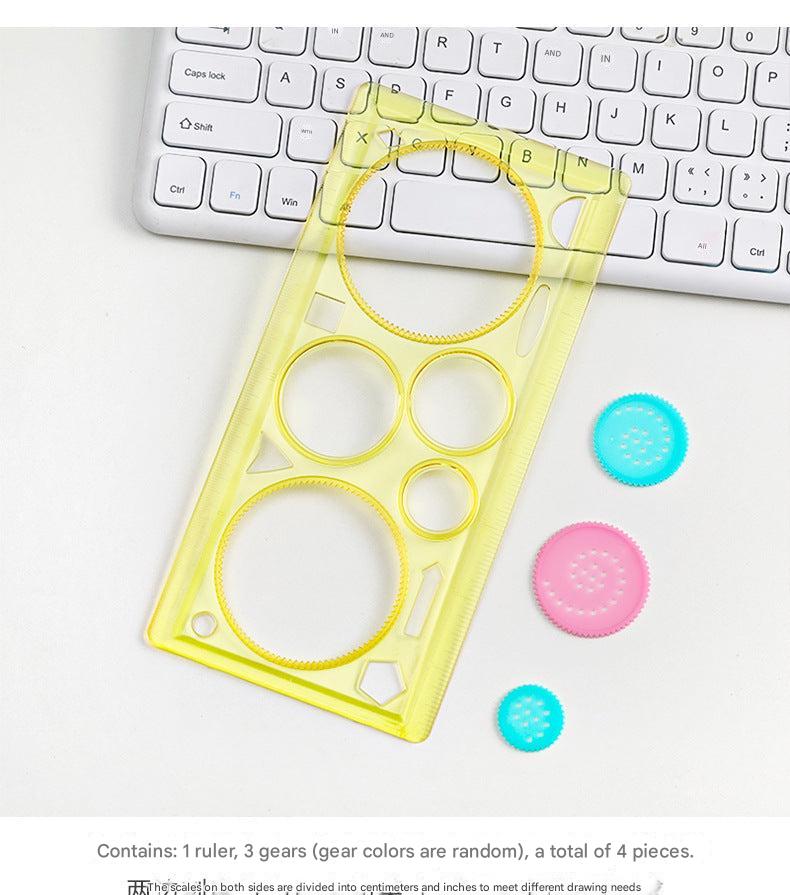 colorful multi-purpose ruler with stencils top view