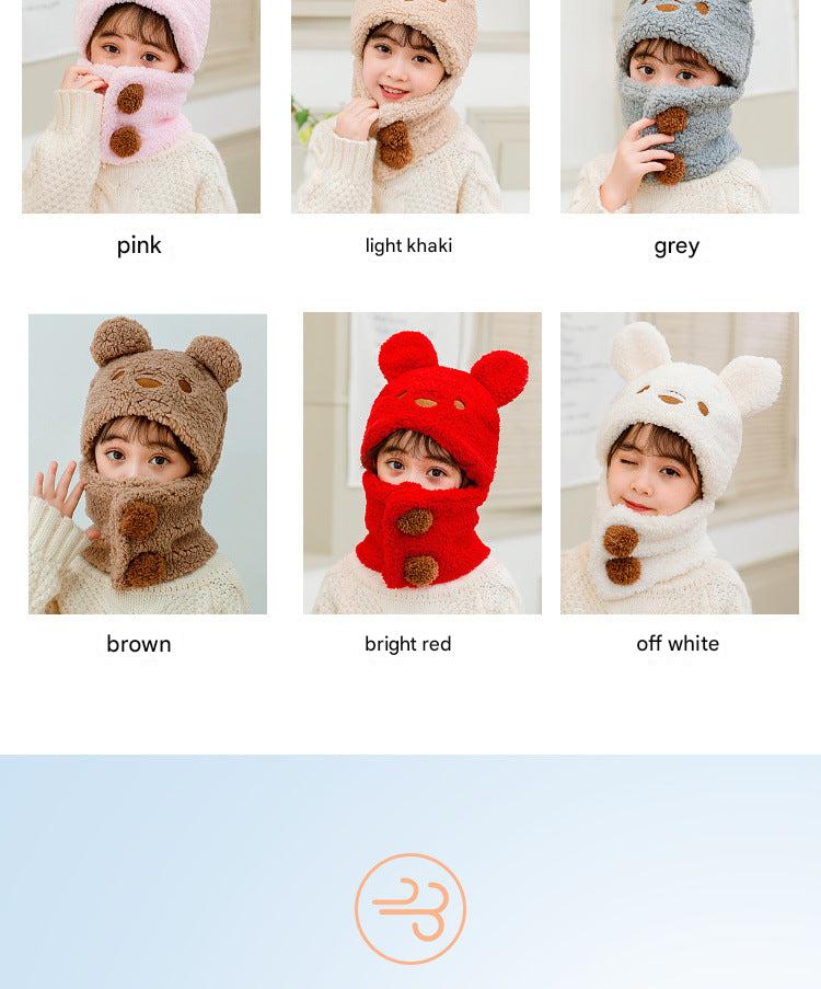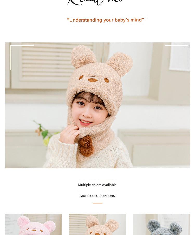 Cute Bear Pattern Kids Winter Hat with Scarf - Plush and Warm for Boys and Girls