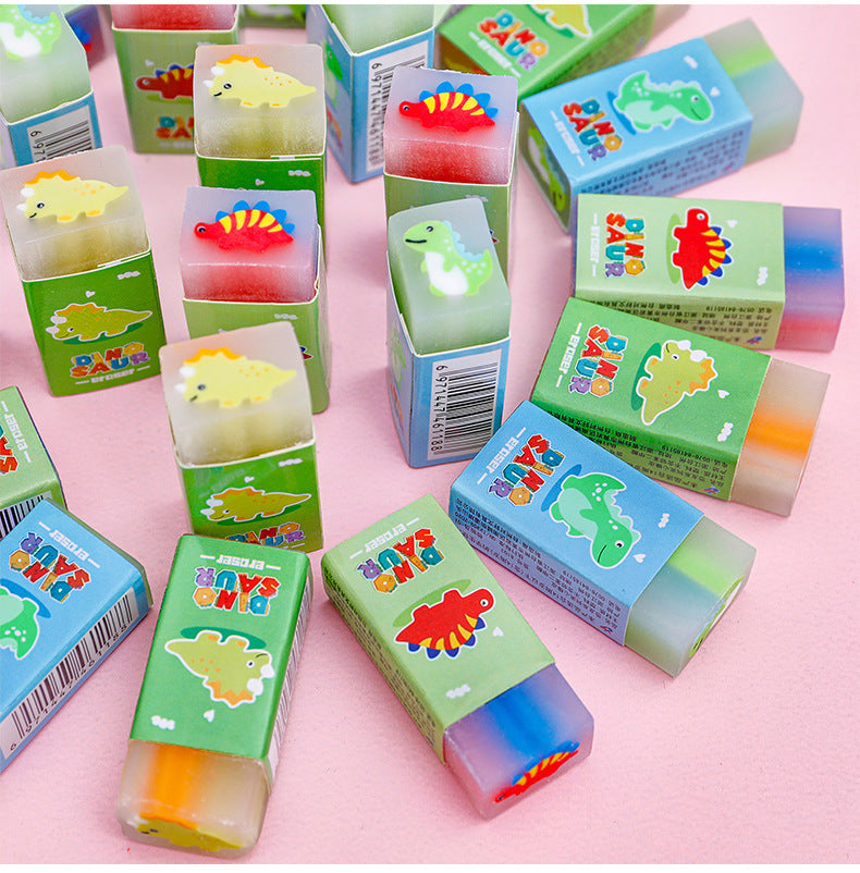 Enhance your child's school supplies with our Cartoon Dinosaur Eraser! Designed for delight and functionality, each eraser features a vibrant dinosaur illustration that captures the hearts of kids and encourages them to keep their study spaces neat. Made from high-quality, non-toxic PVC, these erasers are built to handle the mistakes of any graphite pencil, ensuring clean corrections without damaging the paper. Measuring just 4.6 x 2.1 x 1.5 cm and weighing 17g, these erasers are perfect for on-the-go corrections. Ideal for giving as personal gifts or using as prizes at parties or educational events, these erasers come in a variety of styles to please any young learner or dino lover. Whether for daily use or special occasions, these erasers add a touch of fun and functionality to any pencil case.