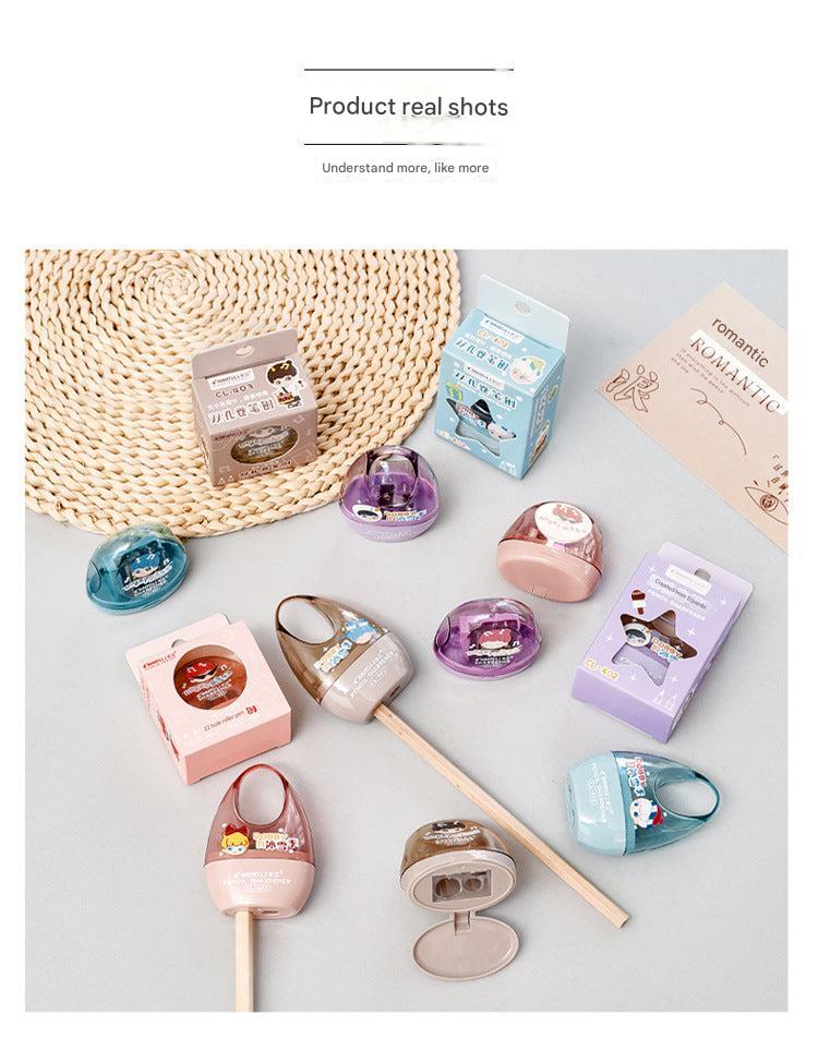 Introducing our Cute Dual-Hole Pencil Sharpener, tailor-made for children and students. Featuring vibrant, cartoonish designs, this sharpener not only appeals visually but is also highly functional. It's equipped with a dual-hole accommodating different pencil sizes, making it perfect for various drawing and writing utensils. Thanks to its compact and lightweight design, it can easily fit into any pencil case, desk drawer, or backpack, ensuring that sharp pencils are always at hand. Cleaning is a breeze with its detachable shavings container, simplifying maintenance and keeping your work area tidy. Designed with a manual turn mechanism, it offers a safe sharpening experience that is suitable for users of all ages. It's the perfect choice for gifting during school celebrations, birthdays, or any festive occasion!