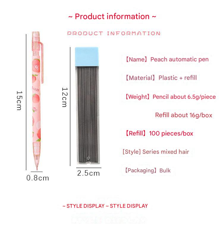 Cute Peach-Themed Mechanical Pencils for Kids - Colorful, Non-Sharpening Press Pencils