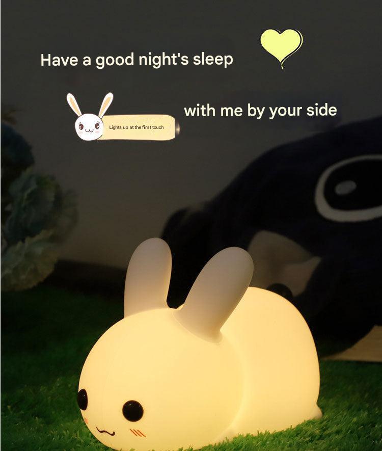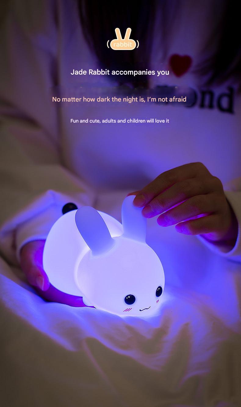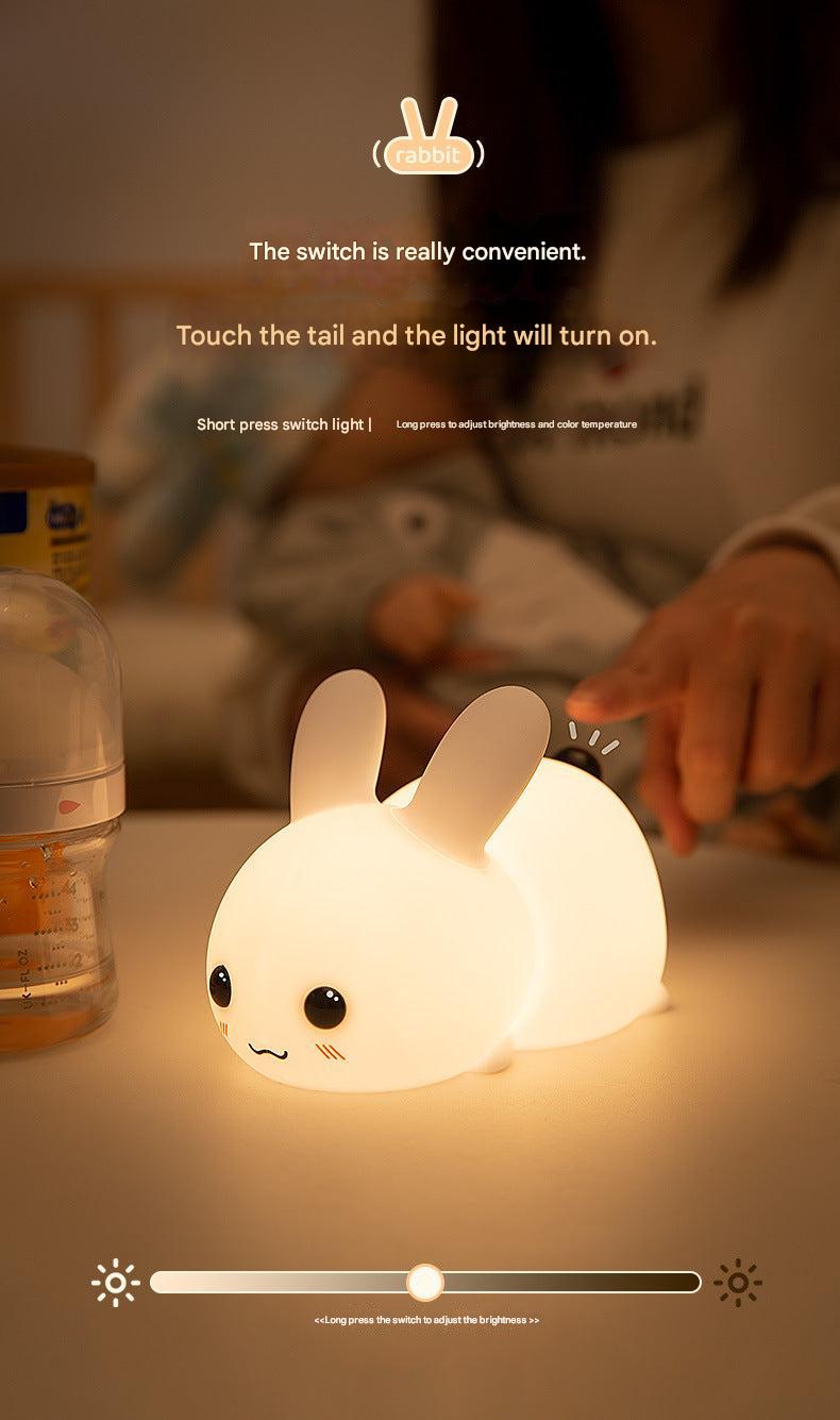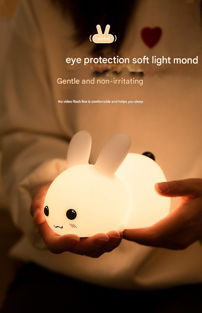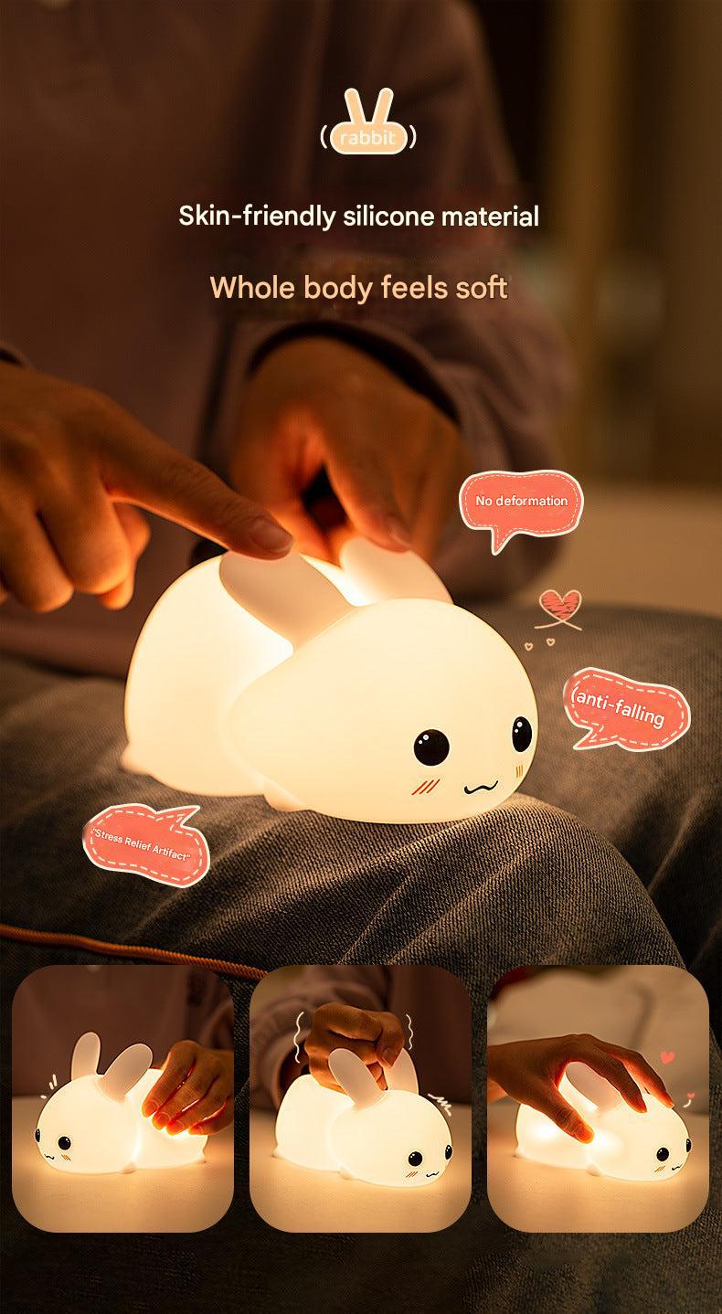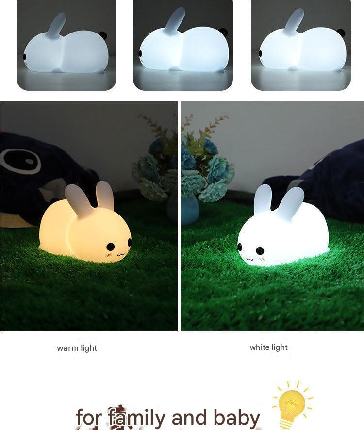 Cute Silicone Rabbit LED Night Light, Dual Color USB Rechargeable, Touch-Sensor Control for Kids and Adults