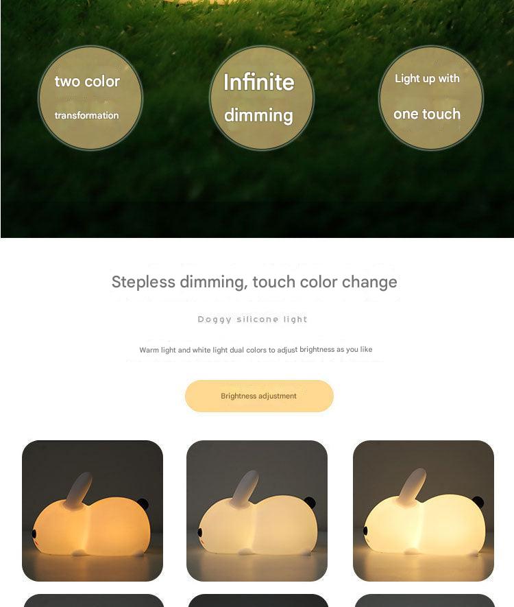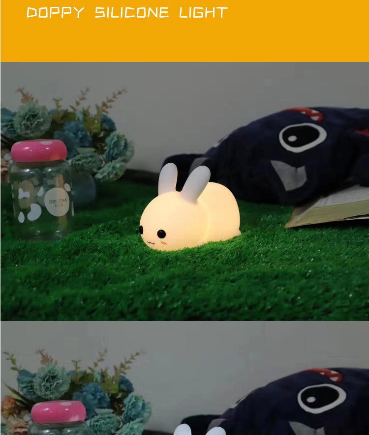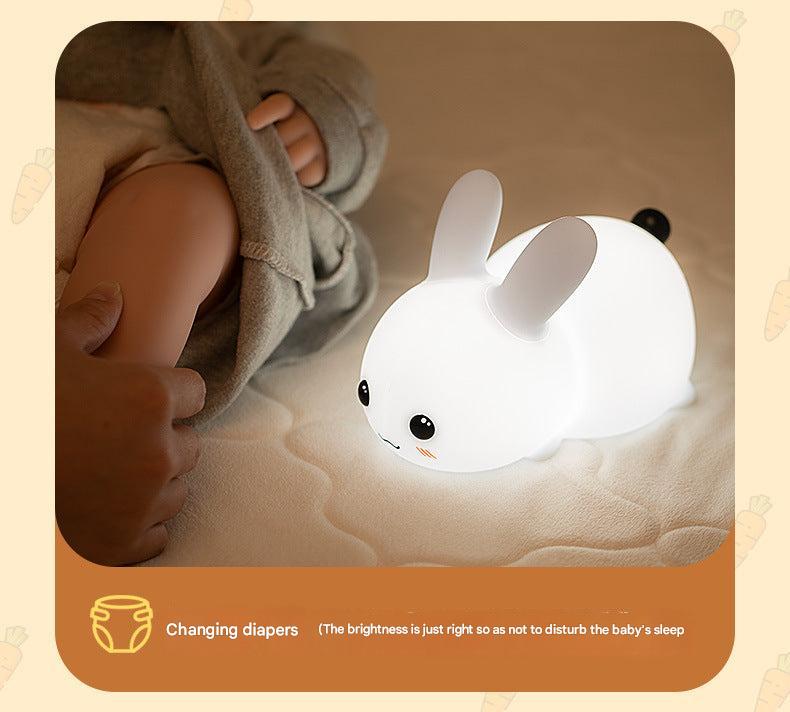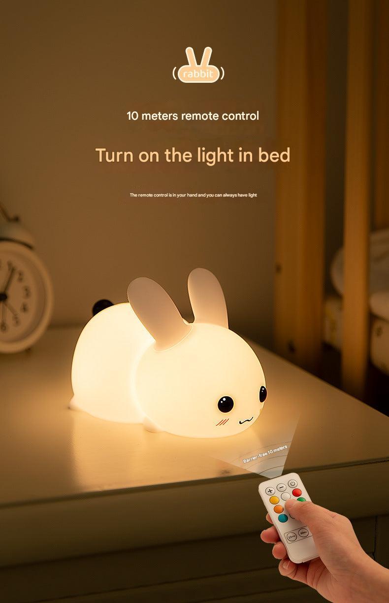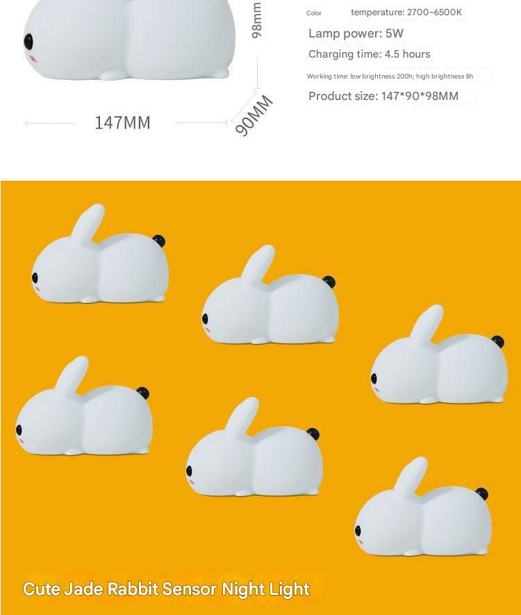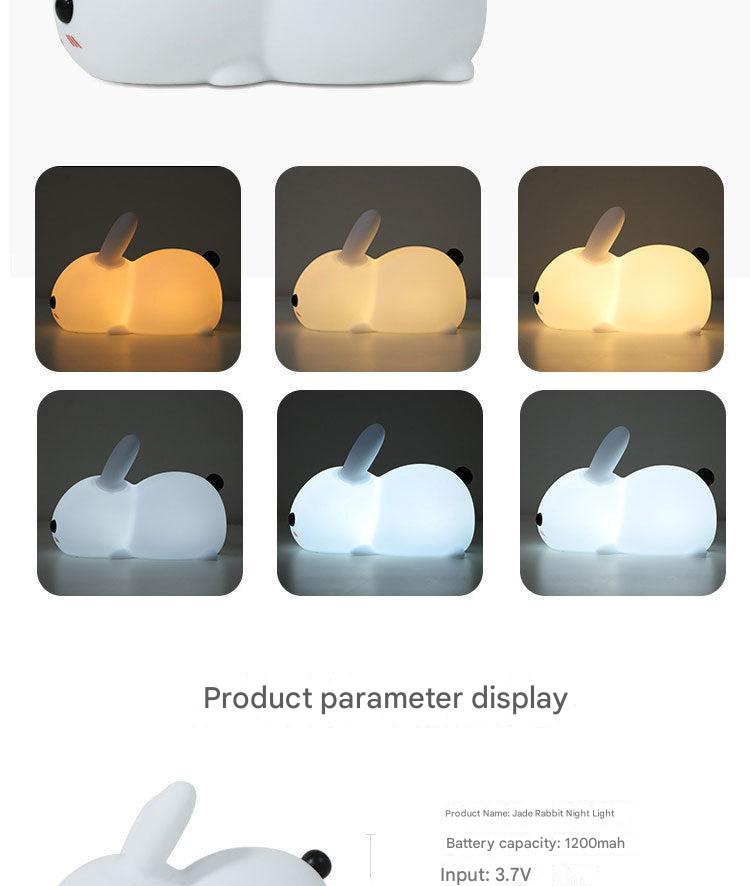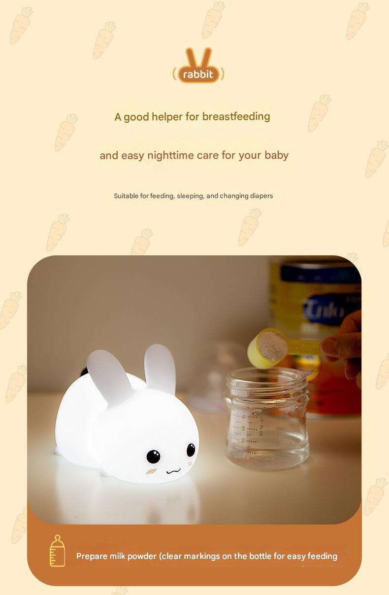Cute Silicone Rabbit LED Night Light, Dual Color USB Rechargeable, Touch-Sensor Control for Kids and Adults