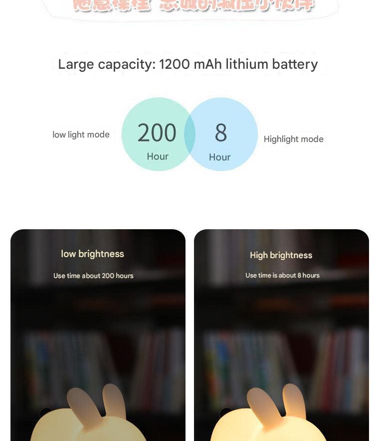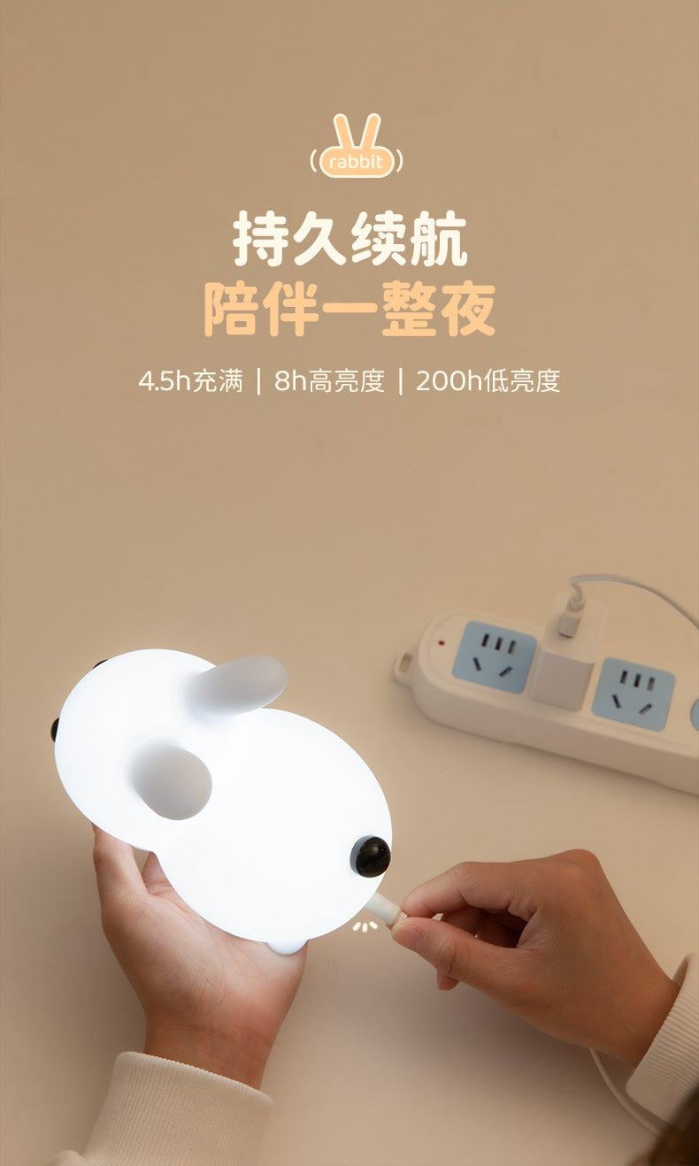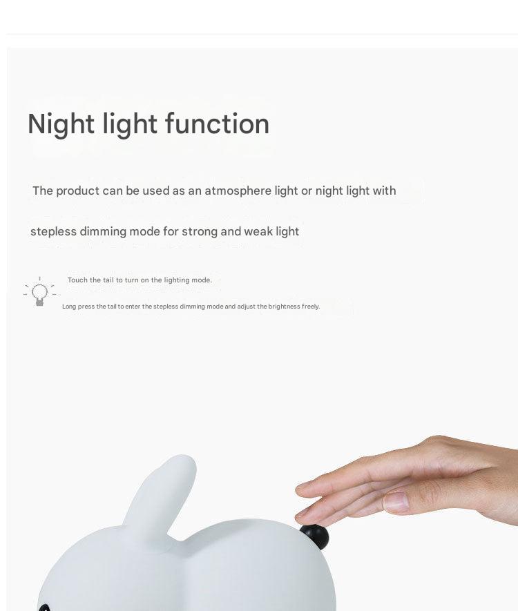 • Soft Silicone Material: Crafted from gentle silicone, this playful rabbit night light is safe and pleasant to touch, ideal for children’s bedrooms.