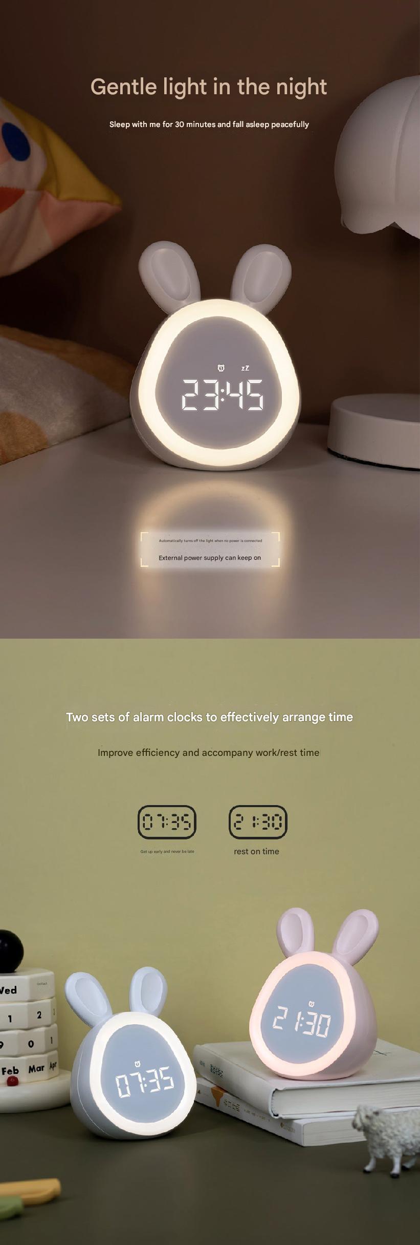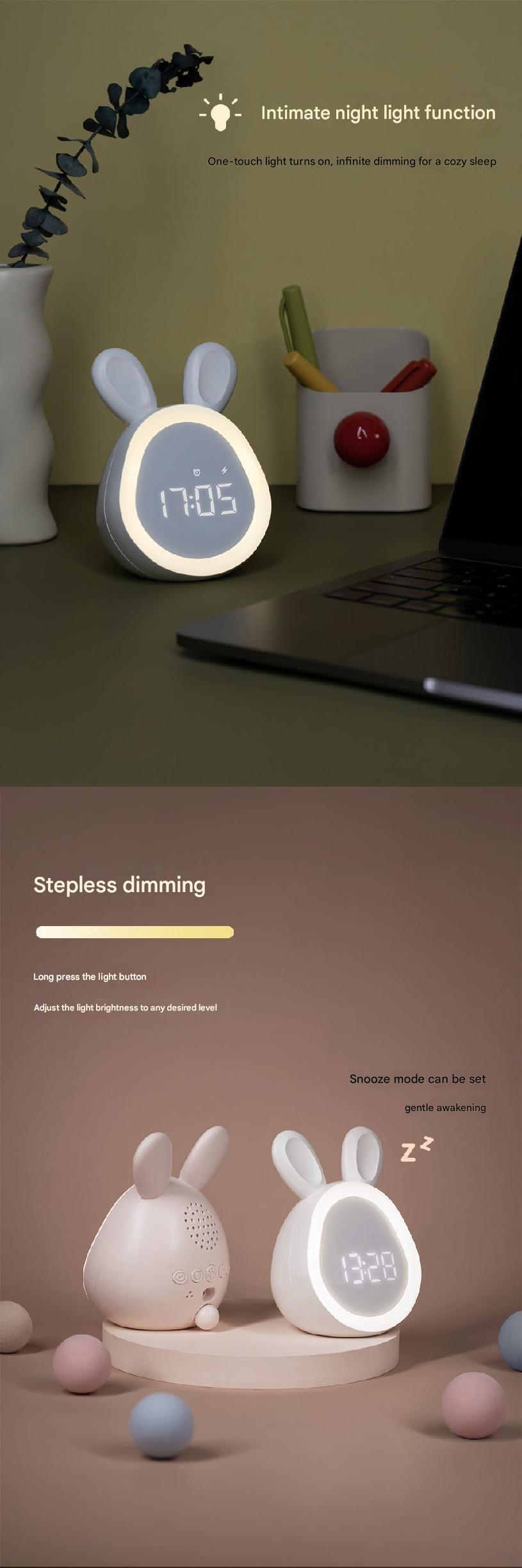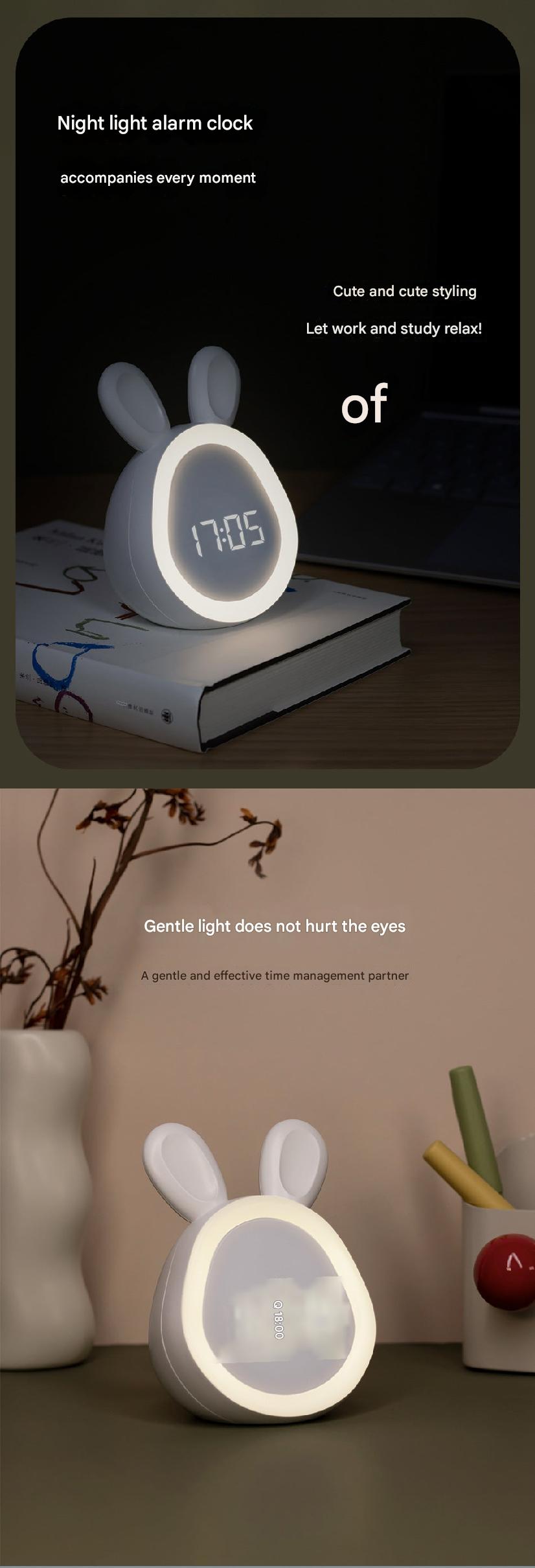 Cute Time Bunny LED Alarm Clock with Night Light, Rechargeable Digital Display for Kids and Students