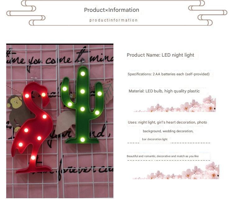 Enhance your home or party's ambiance with our range of Decorative LED Night Lights. Available in multiple animated shapes like cactus, flamingo, pineapple, and more, these lights perfectly blend with any decor theme. Each light offers long-lasting brightness with energy-efficient LED technology, supporting up to 50,000 hours of usage. Being battery-operated, they provide the flexibility to decorate any space, free from the constraints of power outlets. Their vibrant colors can create either a festive or serene environment, suitable for various occasions and spaces such as children's rooms, hallways, and party venues. Made of tough plastic, these night lights ensure durability and safety, making them an excellent choice for both personal and commercial use. Whether you're setting the mood for a quiet evening or brightening up a celebration, these LED night lights deliver beauty and functionality.