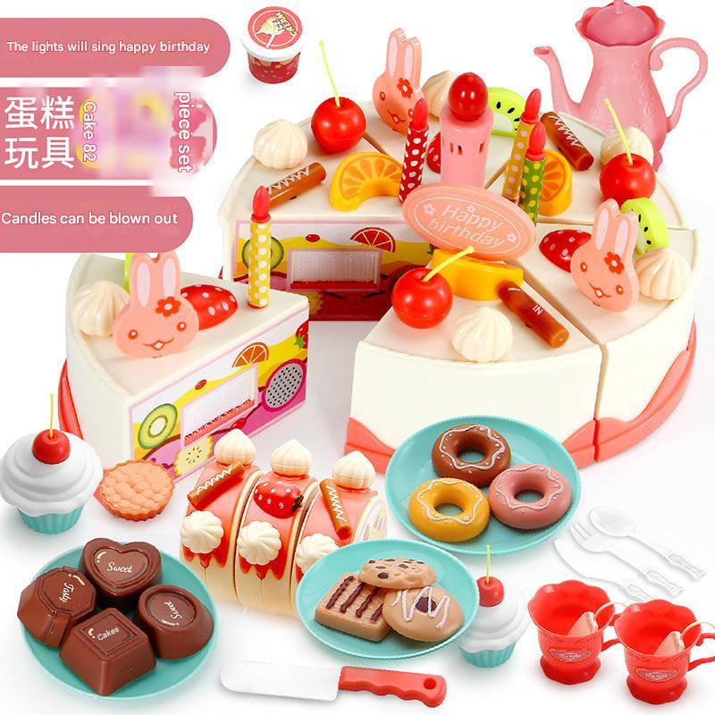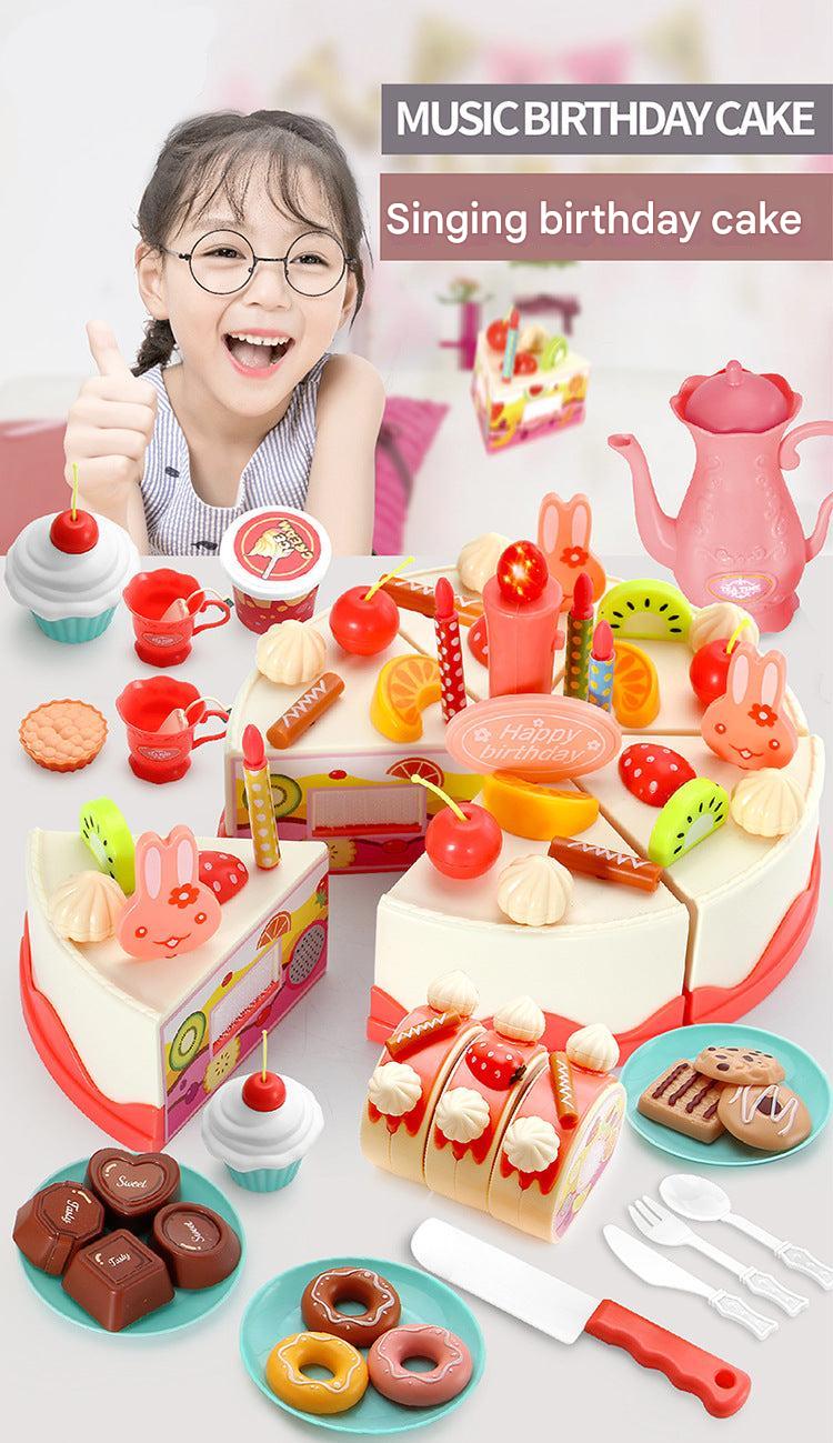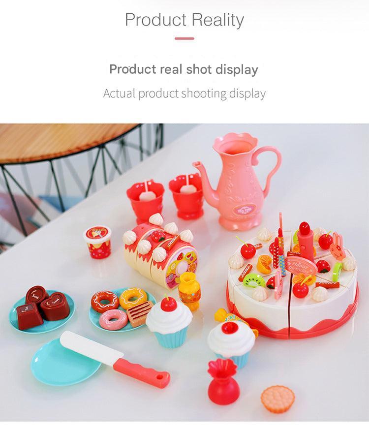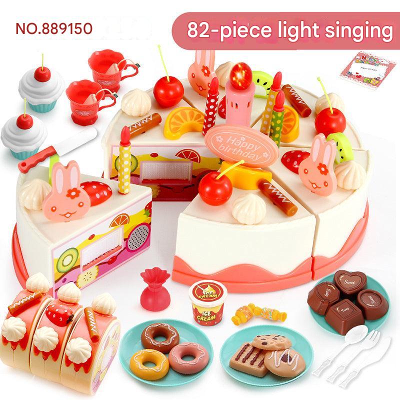 Kids 82-Piece Electric Light & Sound Sensory DIY Fruit Cutting Birthday Cake Toy Playset